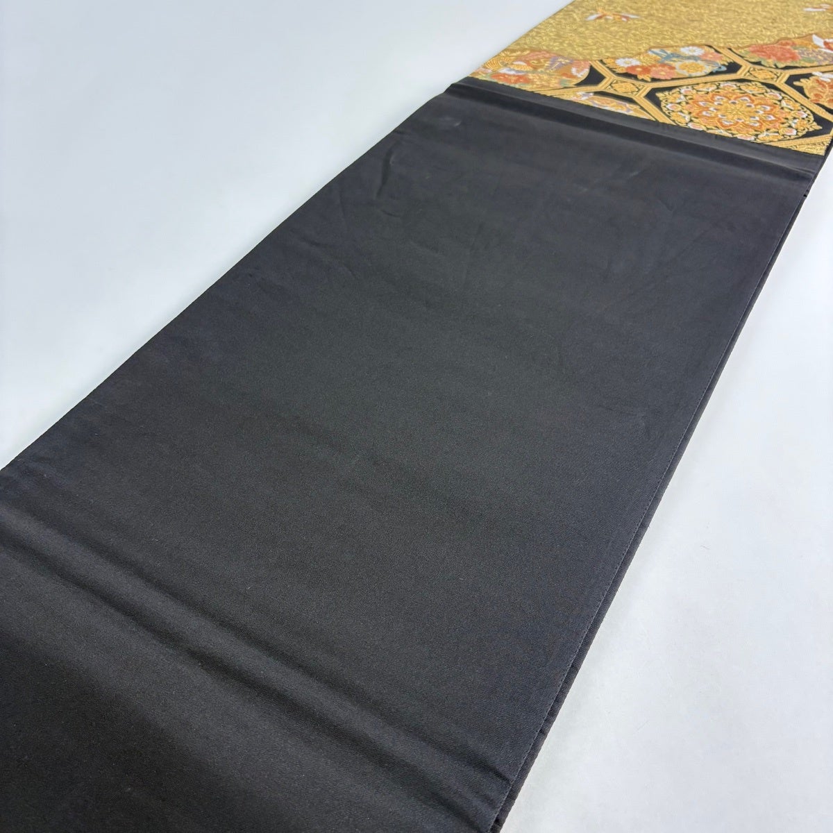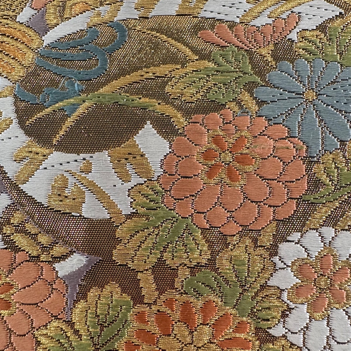 【美品】 袋帯 名品 扇面 花鳥 箔 金糸 金色 お太鼓柄 正絹
