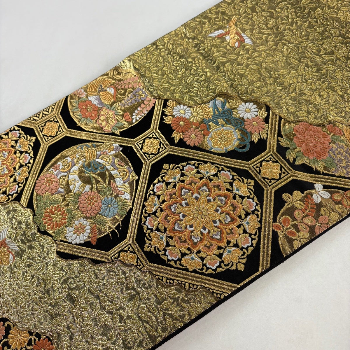袋帯 秀品 関西仕立て 華文 七宝 箔 金銀糸 金色 全通 正絹