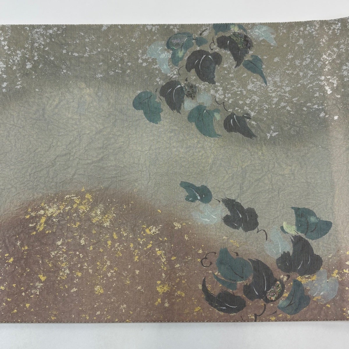 【美品】 袋帯 名品 葉柄 蔦 箔 金銀彩 灰緑 お太鼓柄 正絹
