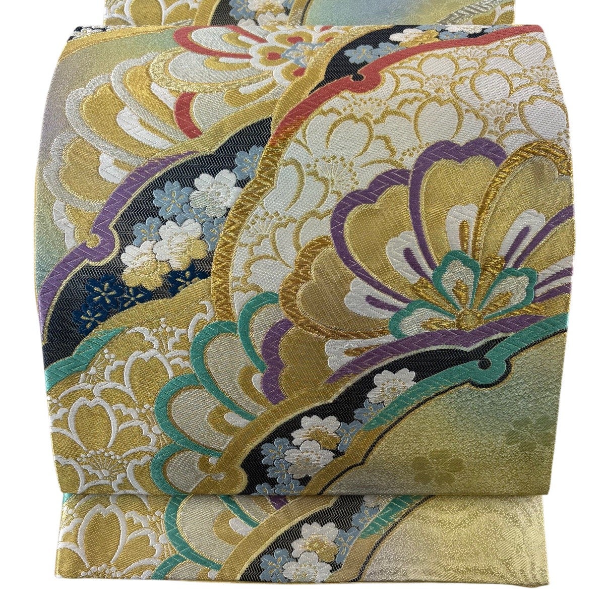 【美品】 袋帯 秀品 やまと 桜 七宝 金糸 箔 金色 六通 正絹