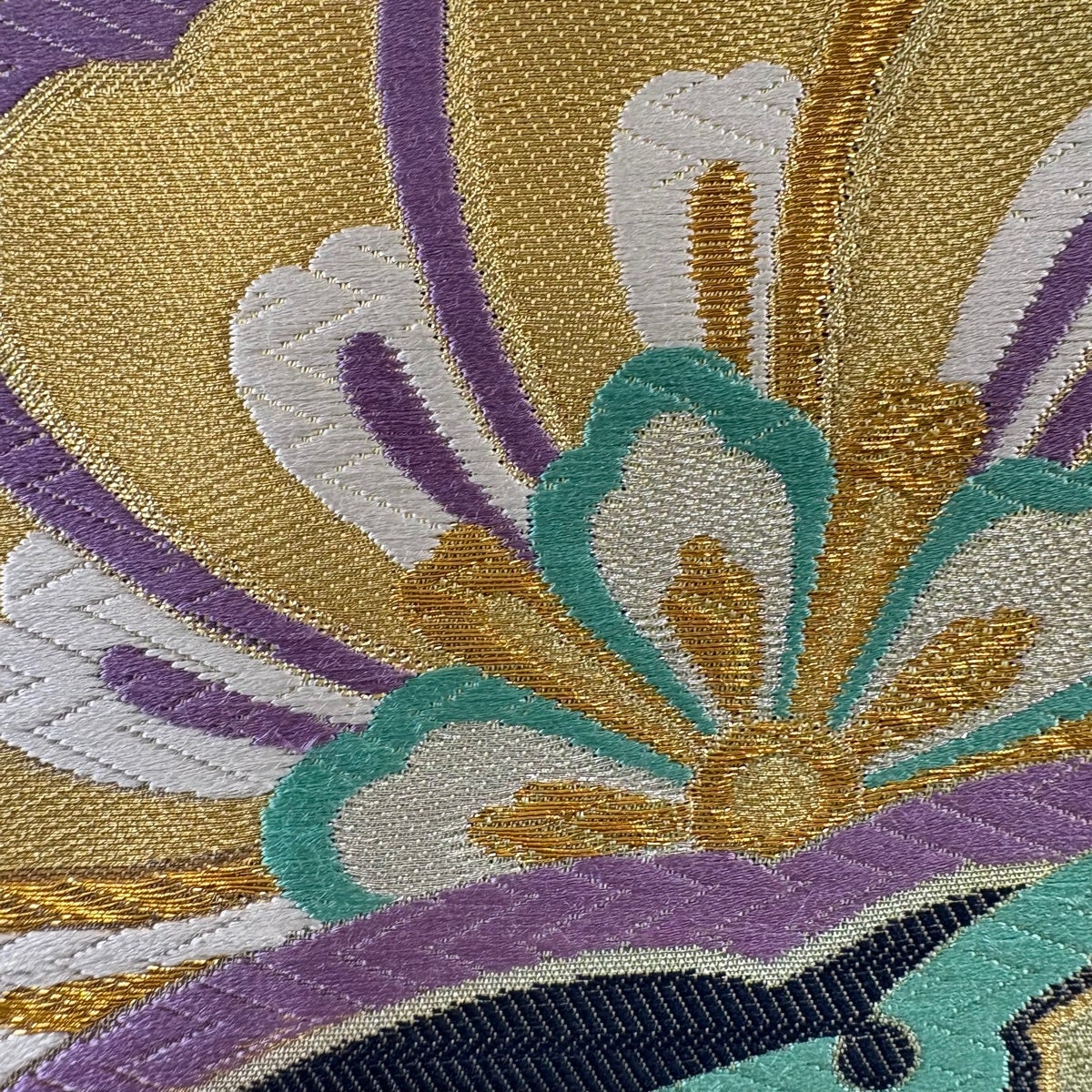 袋帯 秀品 関西仕立て 扇 有職文様 刺繍 金糸 金色 六通 正絹