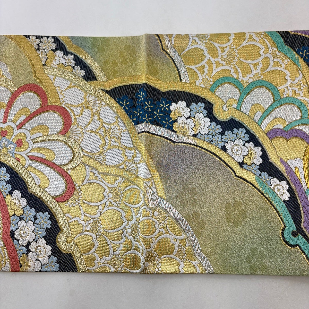 【美品】 袋帯 名品 桃山扇面屏風文 金通し 箔 金色 六通 正絹
