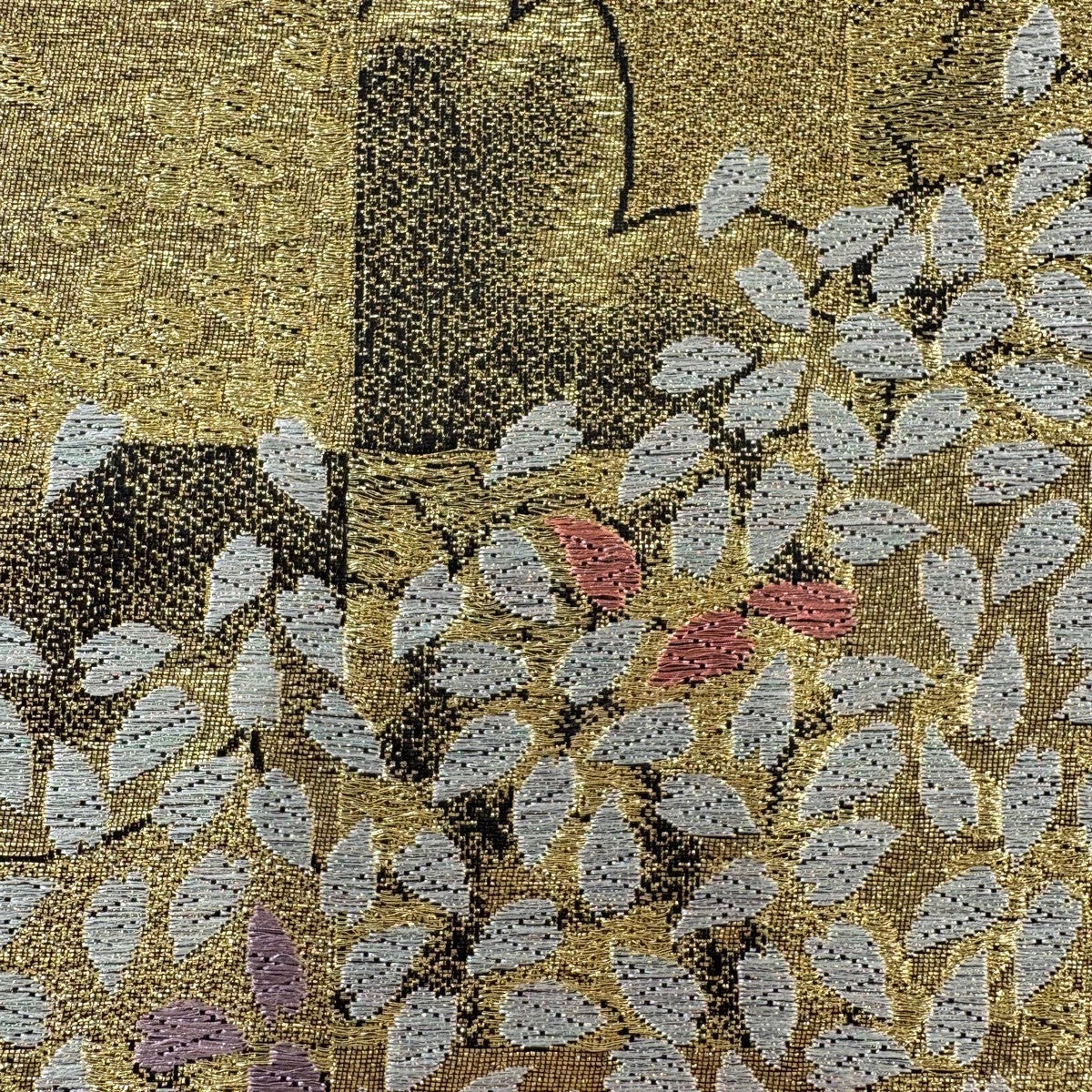 【美品】 袋帯 秀品 振袖向き 桜 花びら 金糸 唐織 金色 六通 正絹