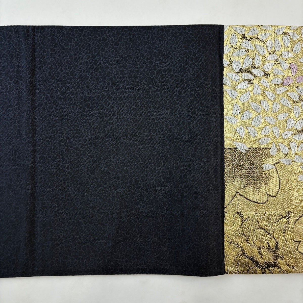 【美品】 袋帯 秀品 振袖向き 桜 桜の花びら 金糸 箔 黒 六通 正絹