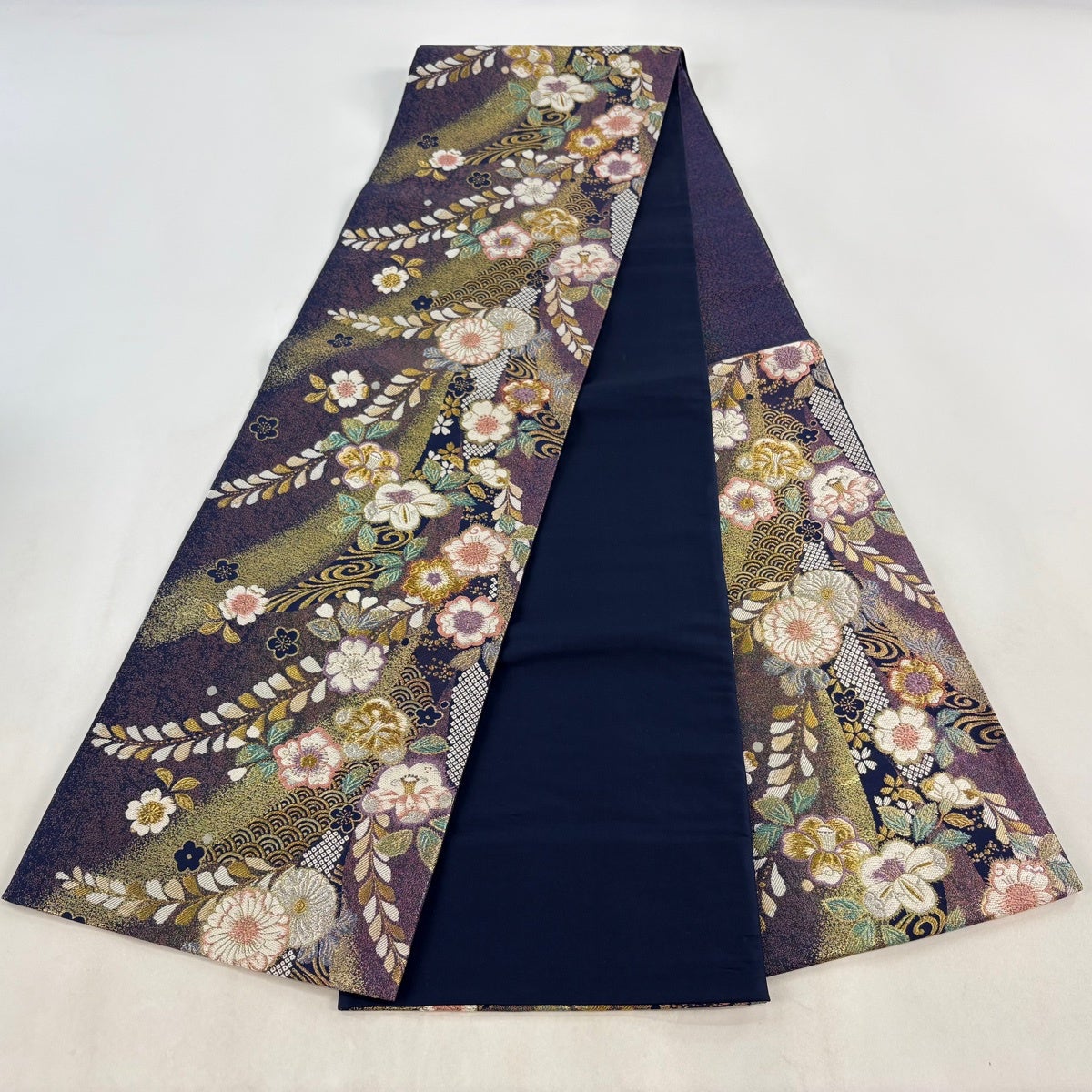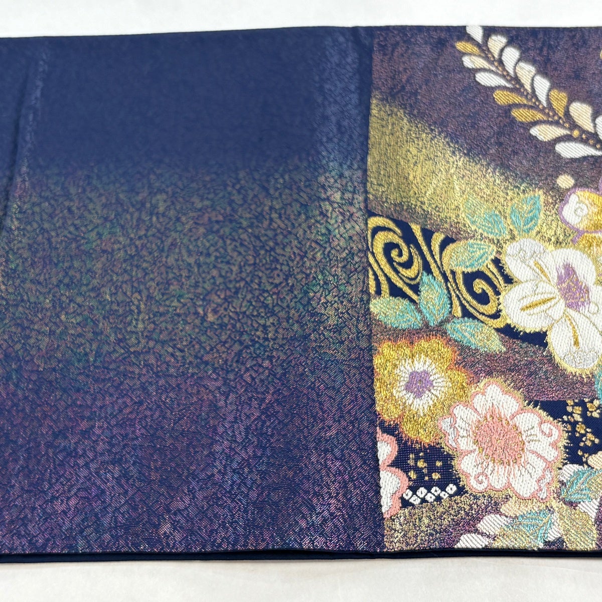 【美品】 袋帯 秀品 振袖向き 梅 草花 金銀糸 箔 金色 六通 正絹