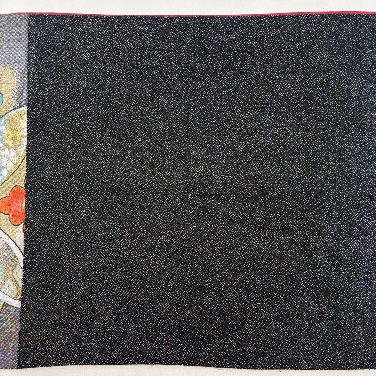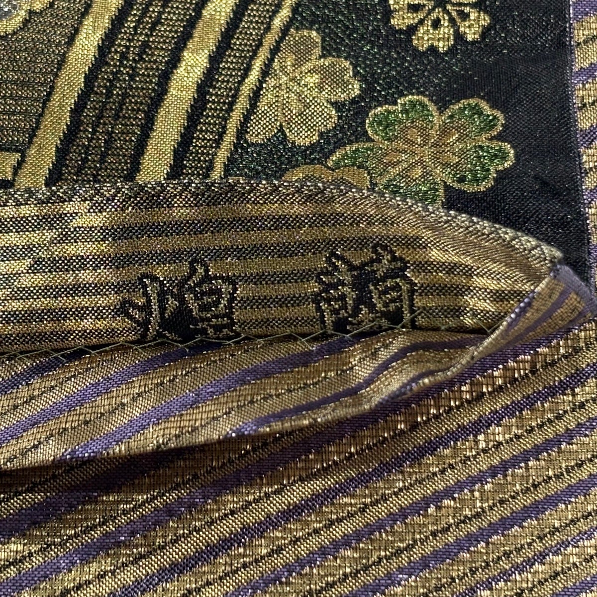 【美品】 袋帯 秀品 振袖向き 華文 桜 金銀糸 唐織 黒 六通 正絹