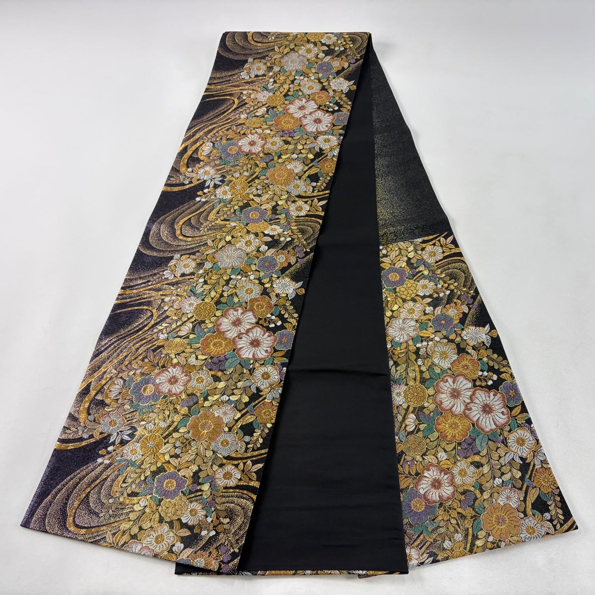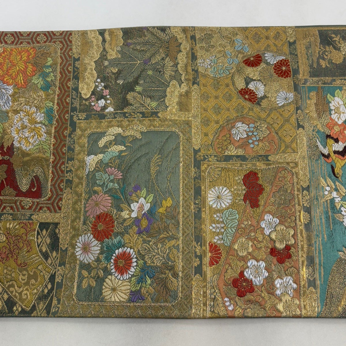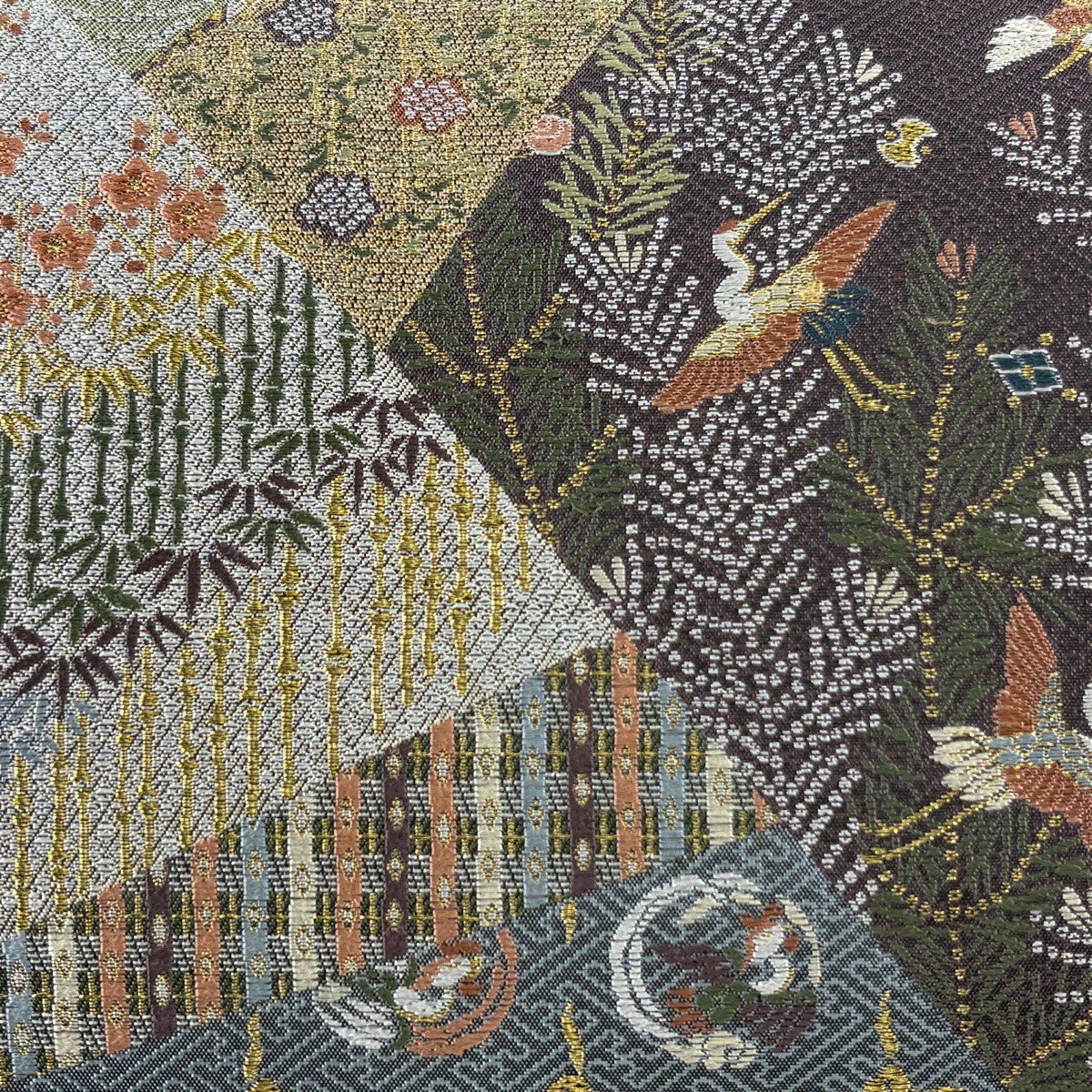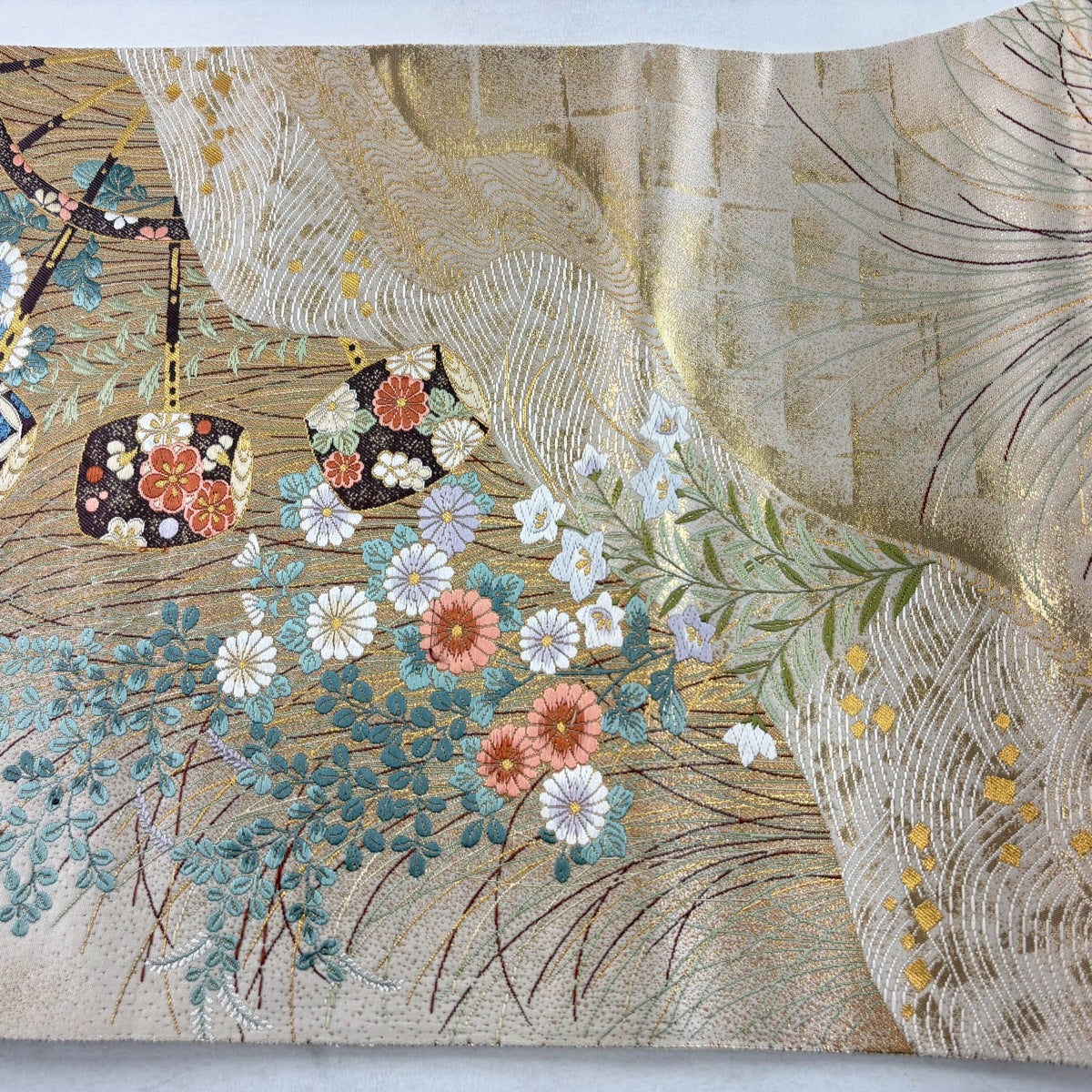 【美品】 袋帯 秀品 慶長瑞松文 慶長菊花山水文 金糸 箔 金色 全通 正絹