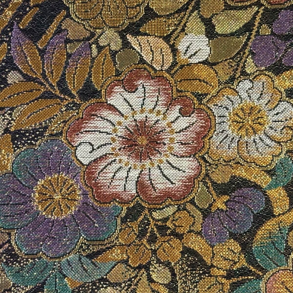 【美品】 袋帯 秀品 草花 ペイズリー 金糸 箔 茶紫 全通 正絹