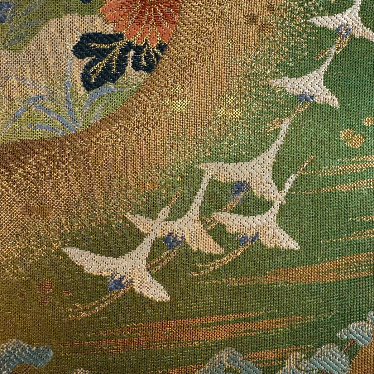 袋帯 名品 落款あり 徳川美術館秘蔵 扇 花鳥 箔 金糸 金色 お太鼓柄 正絹