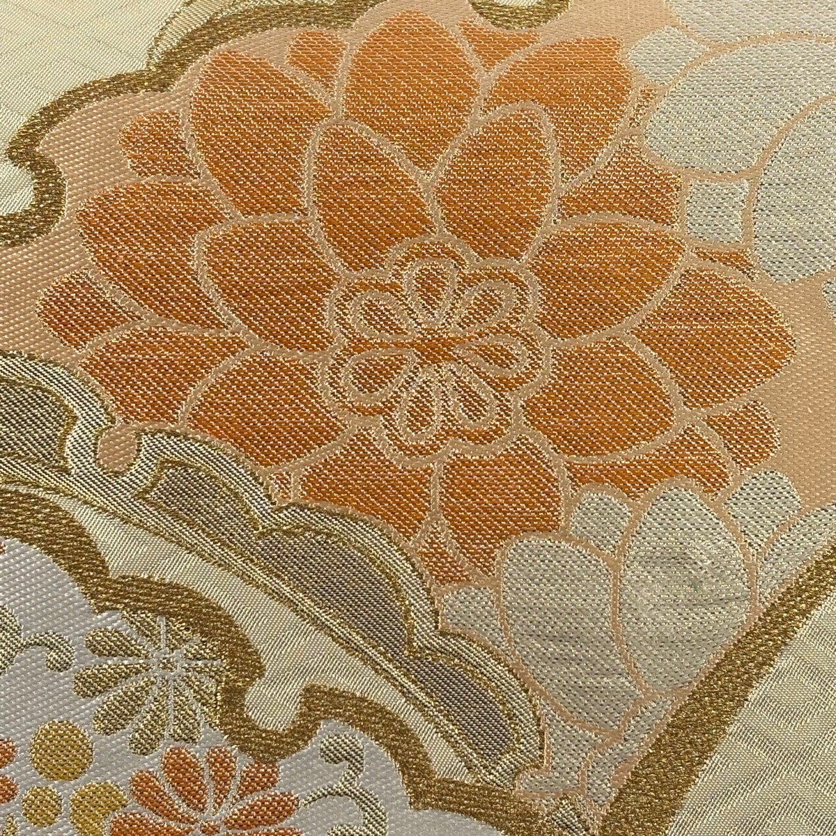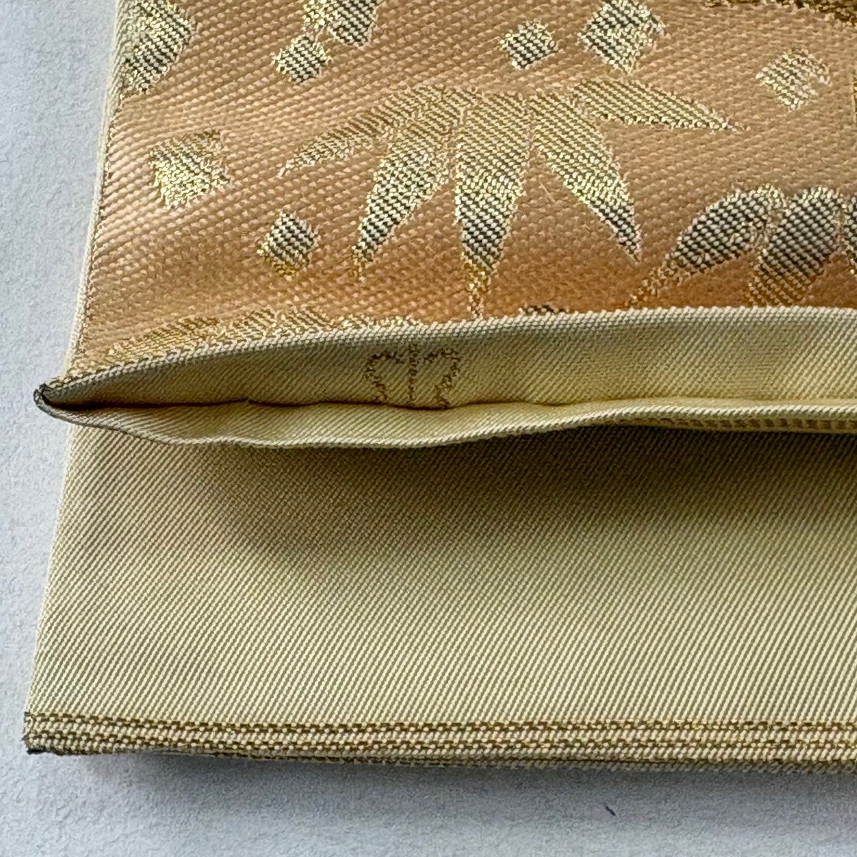 【美品】 袋帯 逸品 山口美術織物 夏帯 高台寺金欄牡丹唐草文 夢小袖 横段 草花 金銀糸 金色 全通 正絹