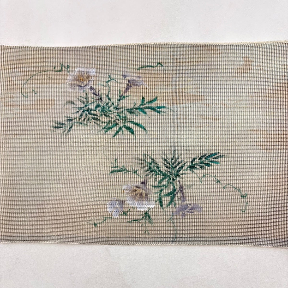 名古屋帯 秀品 落款あり 夏帯 絽 朝顔 クリーム 正絹