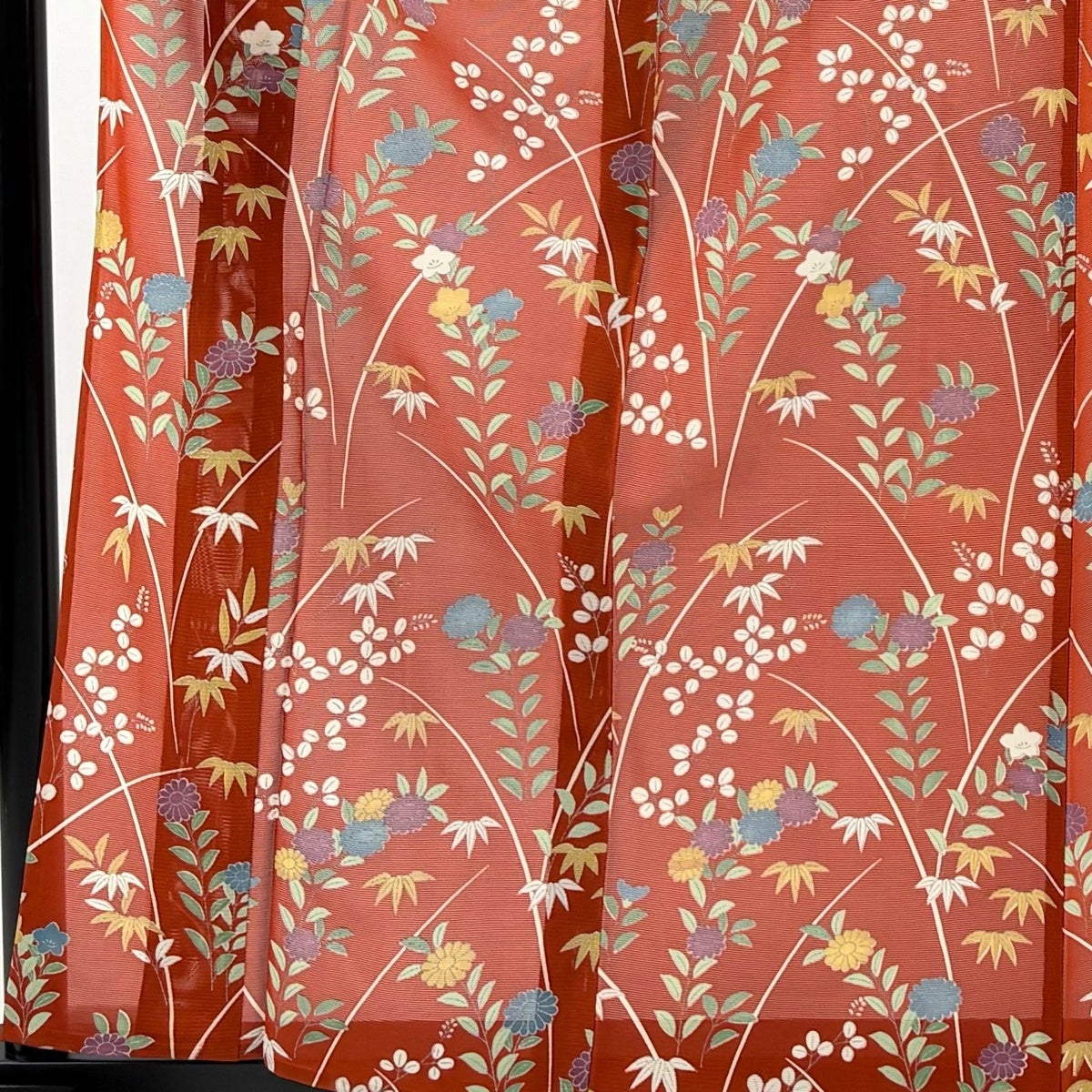 50%OFF 【美品】名古屋帯 名品 証紙あり 紬地 八寸名古屋帯 草花 朱色 正絹 K50