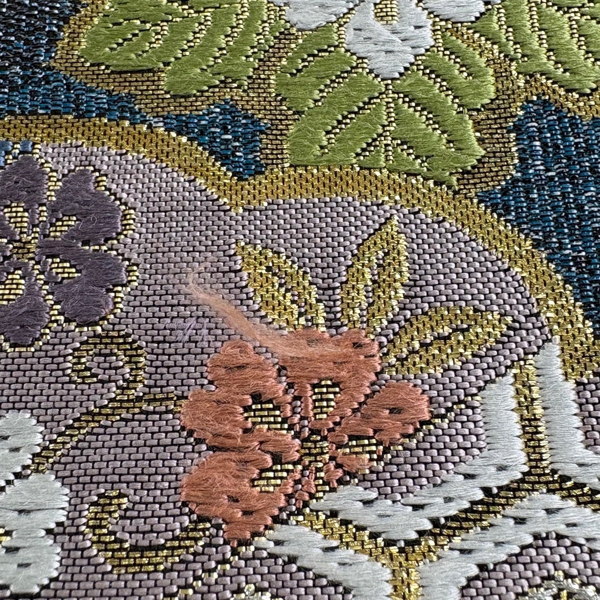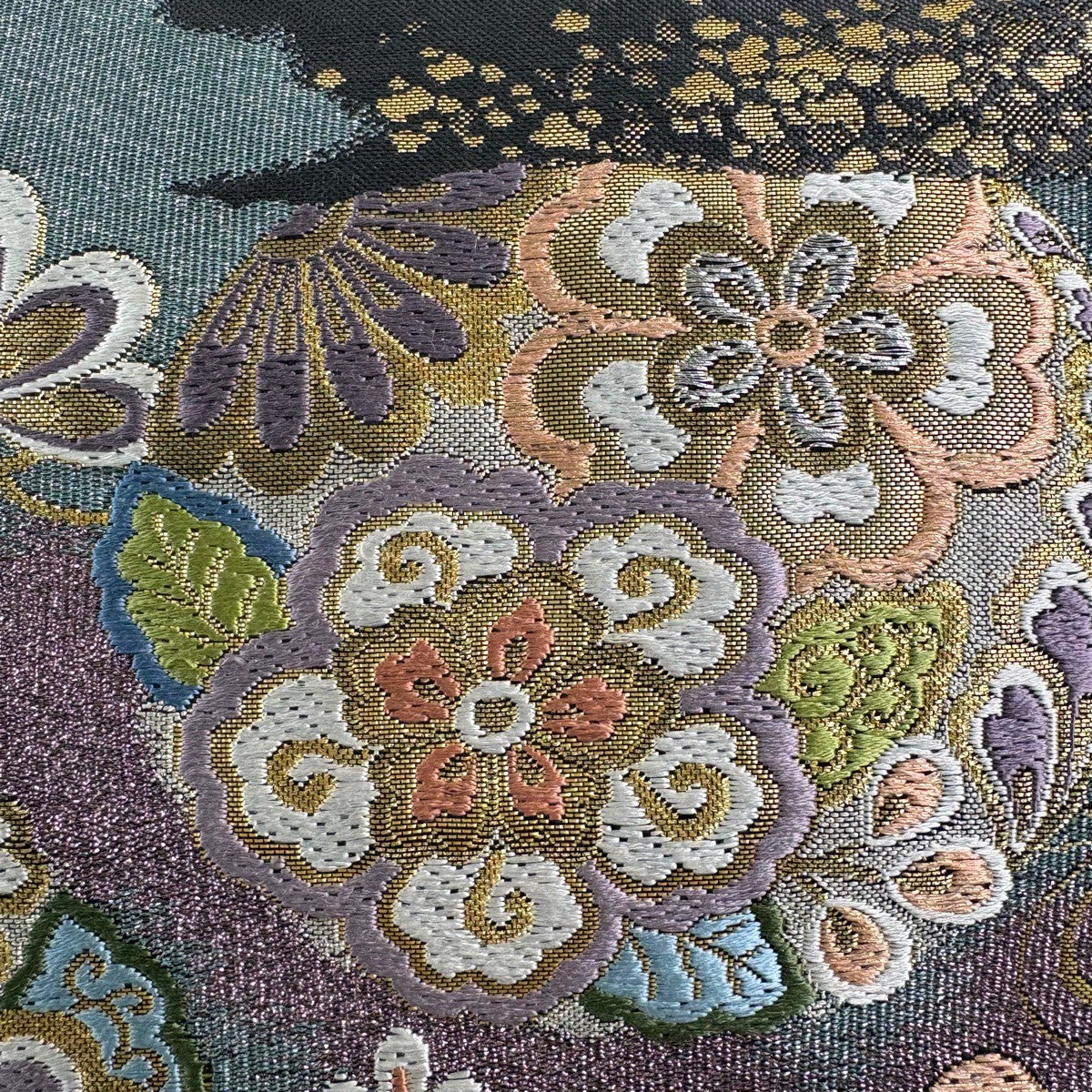 袋帯 逸品 花 松竹梅 刺繍 金銀糸 金茶 六通 正絹
