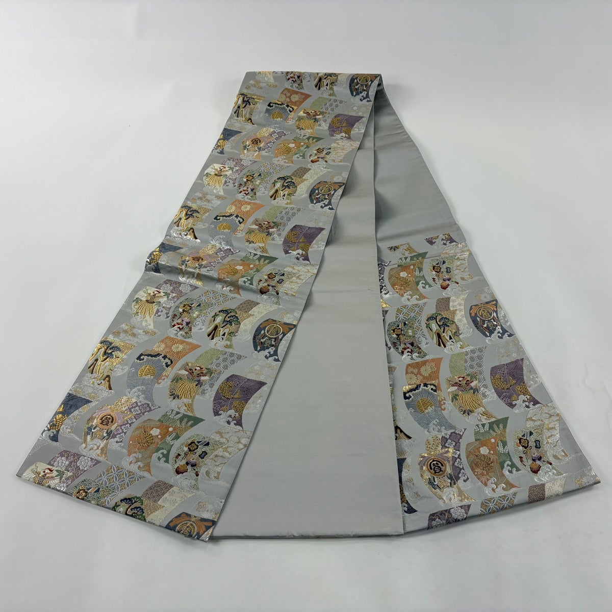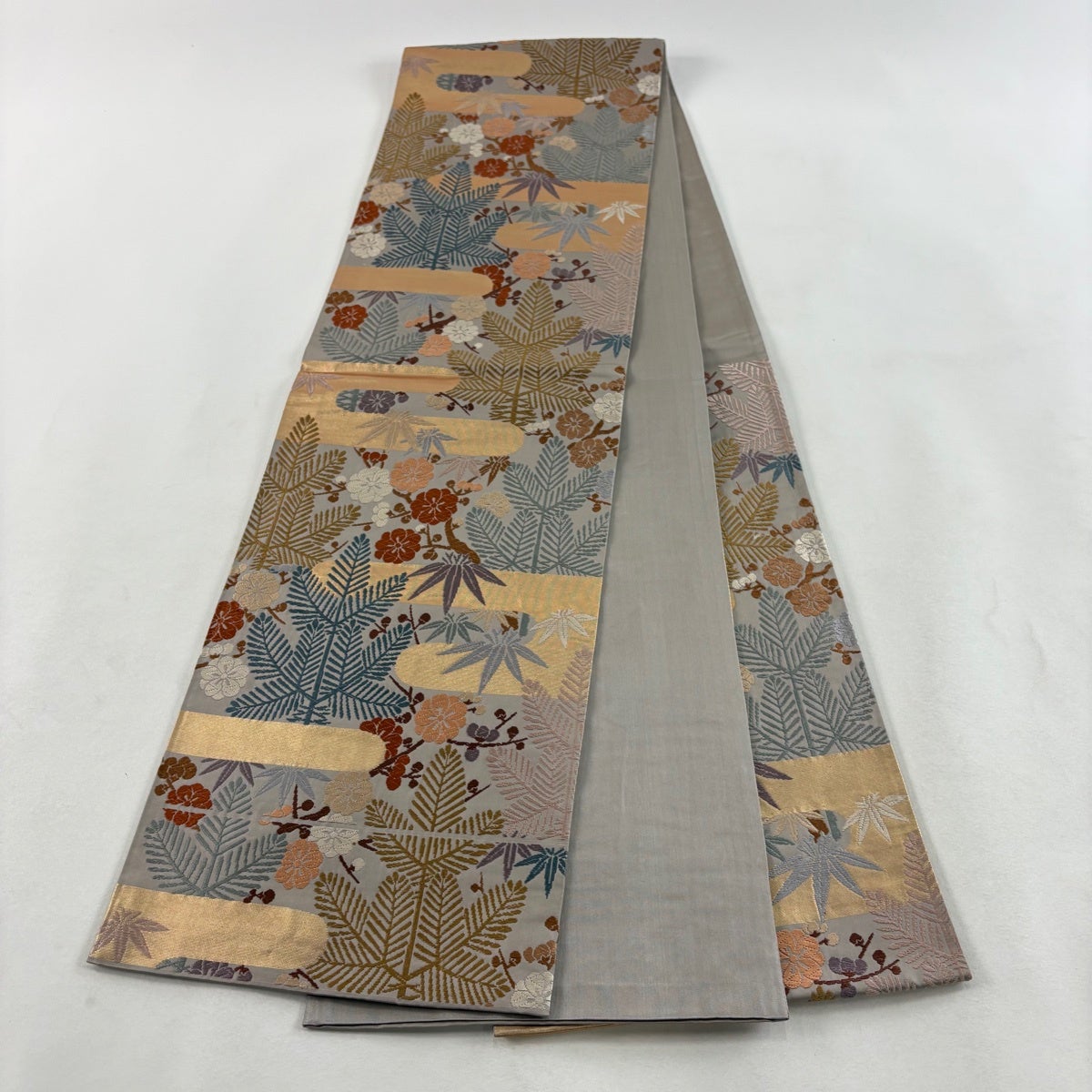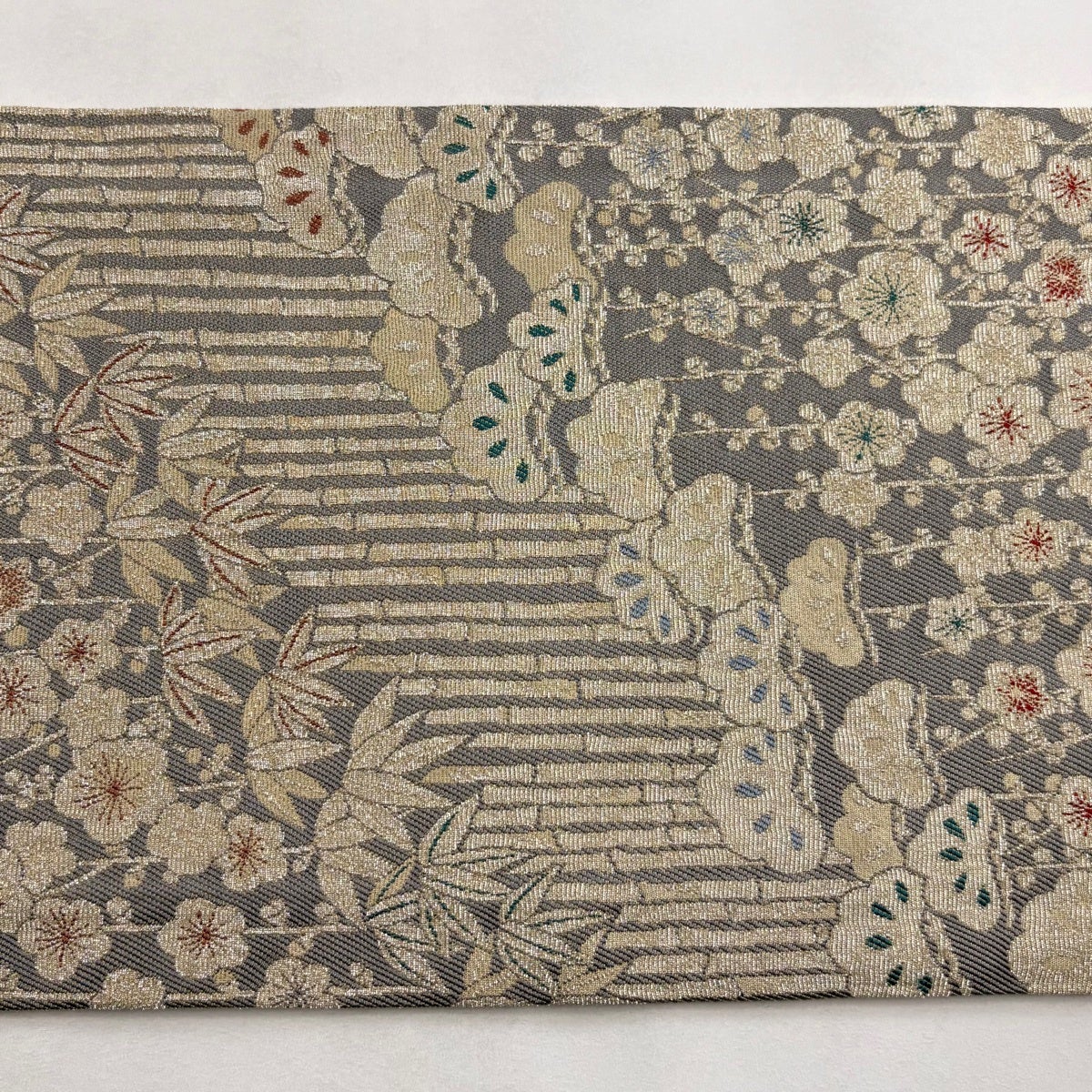 名古屋帯 秀品 松竹梅 丸文 金銀糸 箔 灰色 正絹