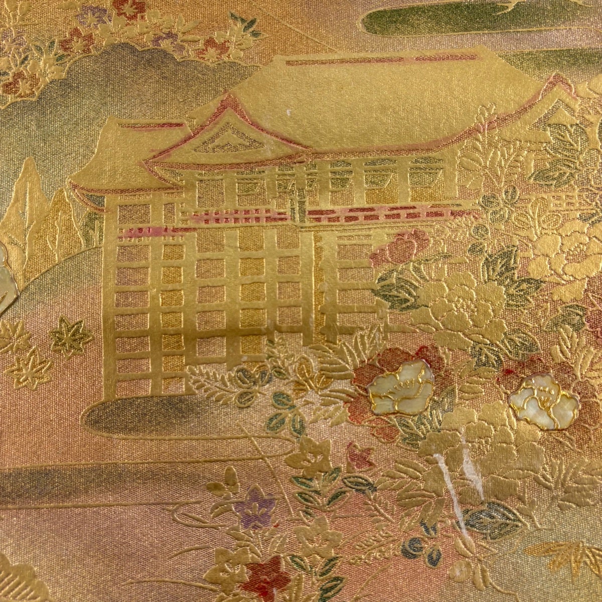 袋帯 秀品 建物 松竹梅 螺鈿 金彩 金色 お太鼓柄 正絹