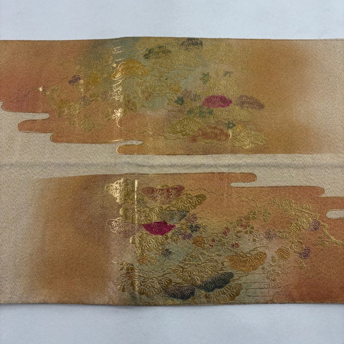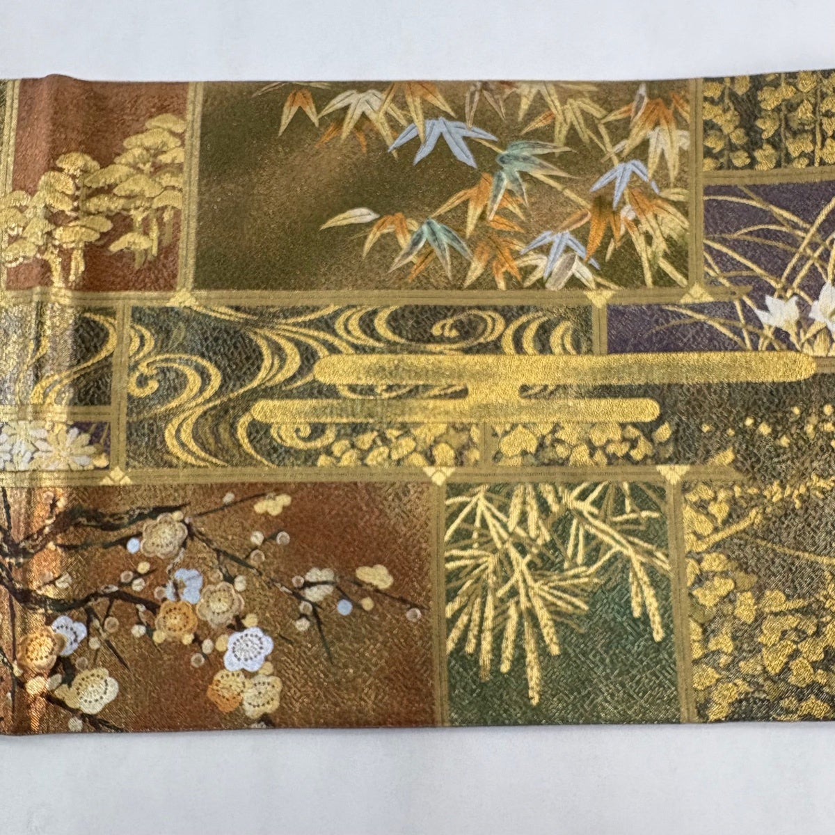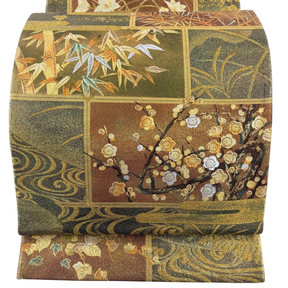 袋帯 秀品 松竹梅 流水 箔 金銀彩 金色 全通 正絹