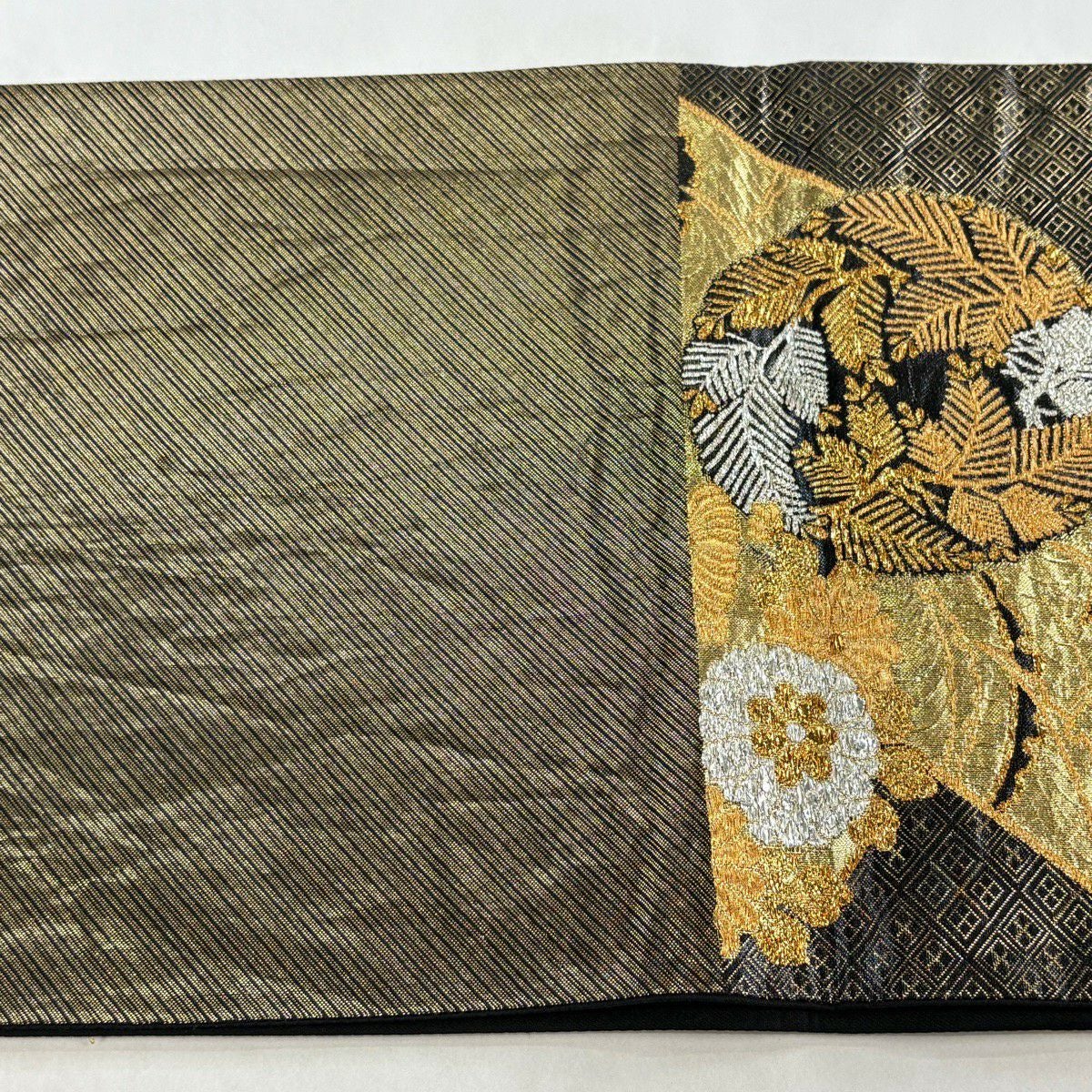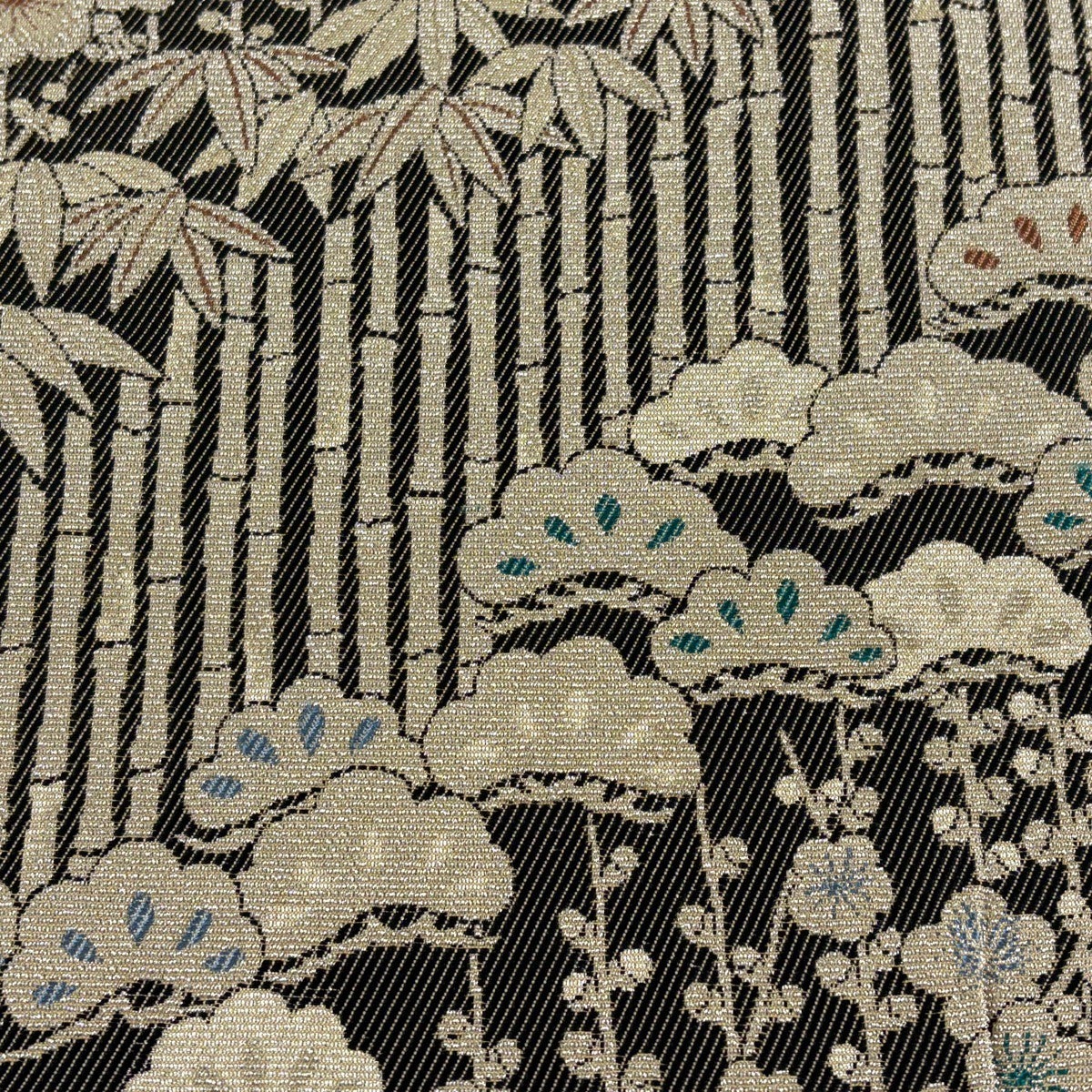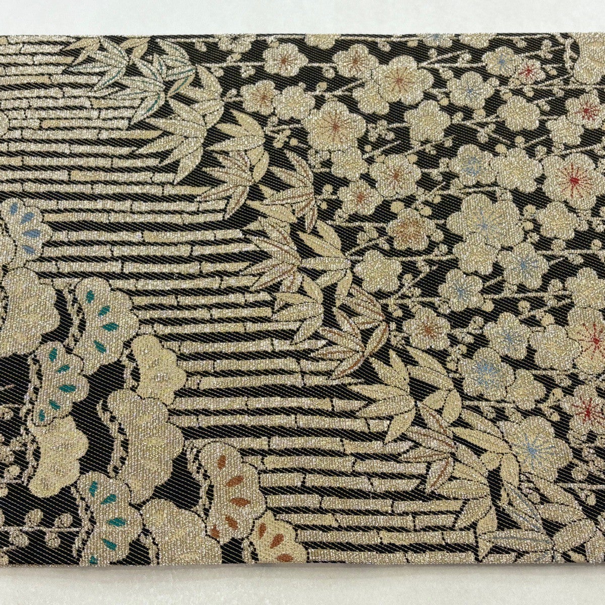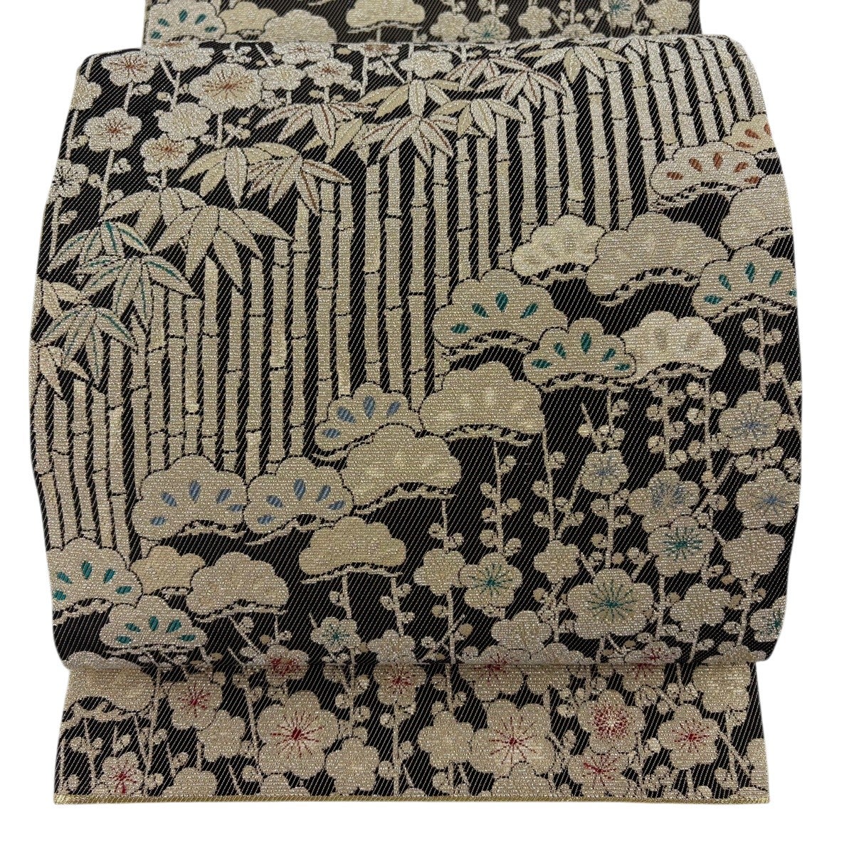 袋帯 秀品 松竹梅 花唐草 金糸 箔 黒 六通 正絹