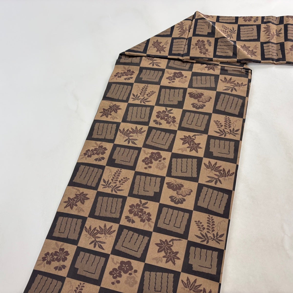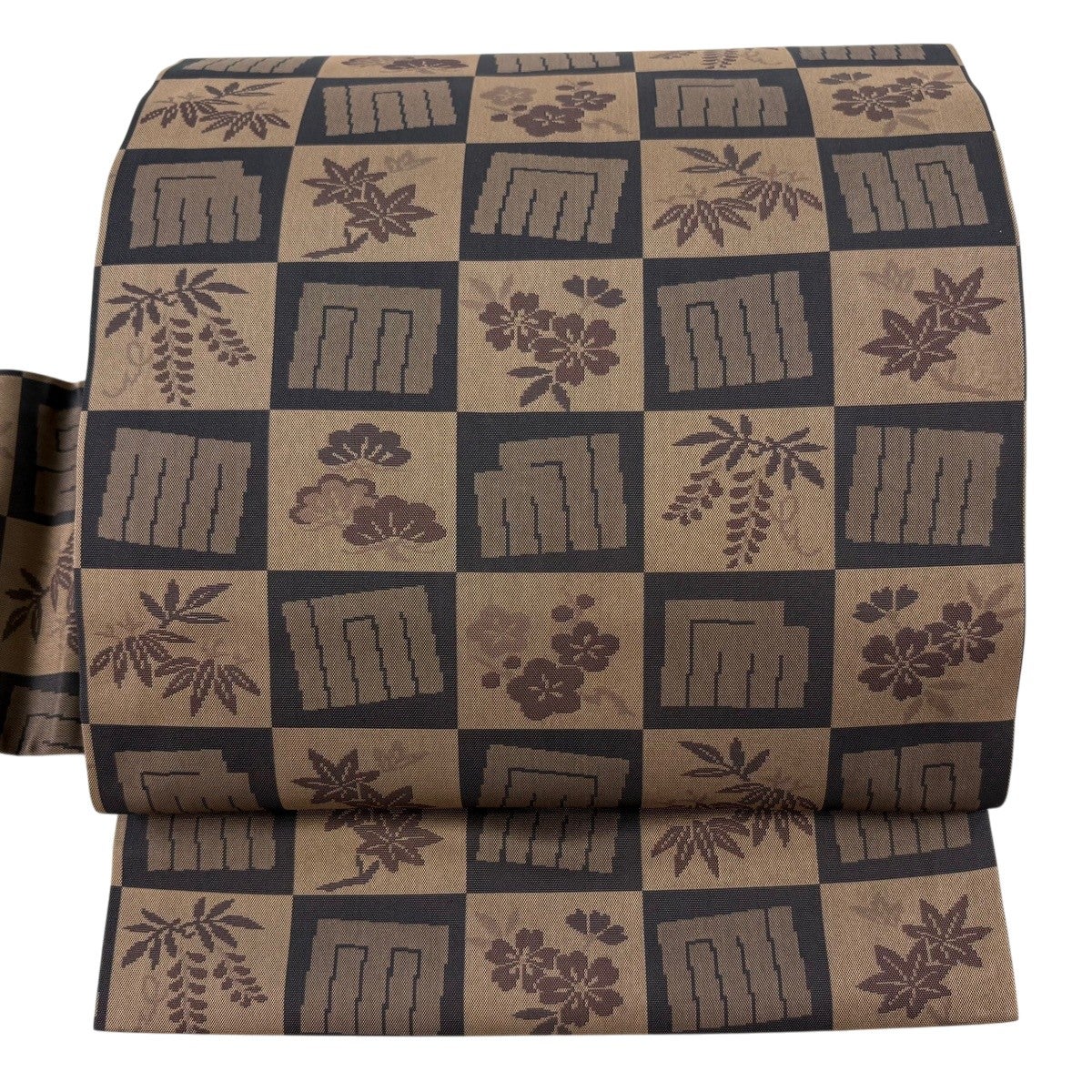 【美品】 名古屋帯 秀品 源氏香 松竹梅 薄茶色 正絹
