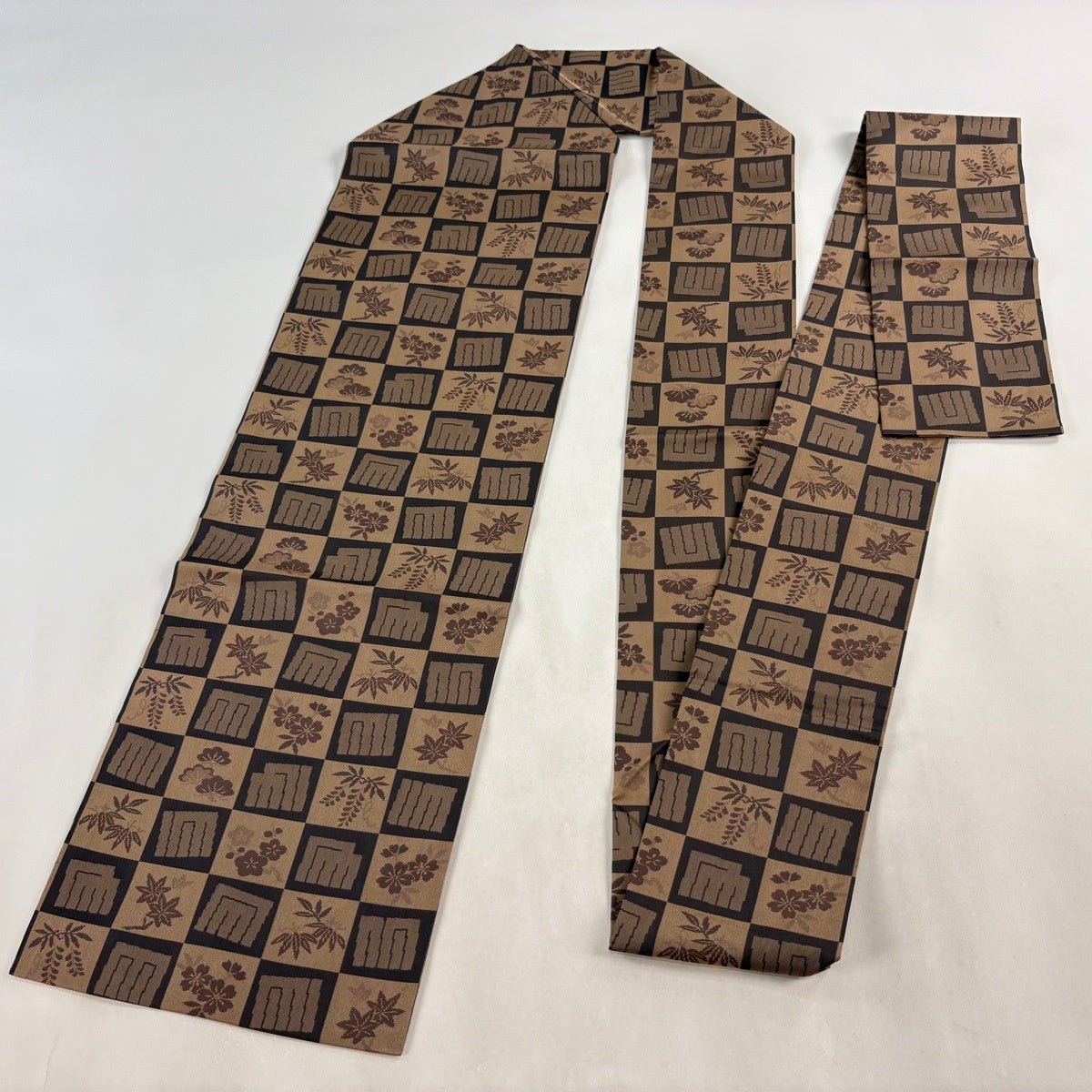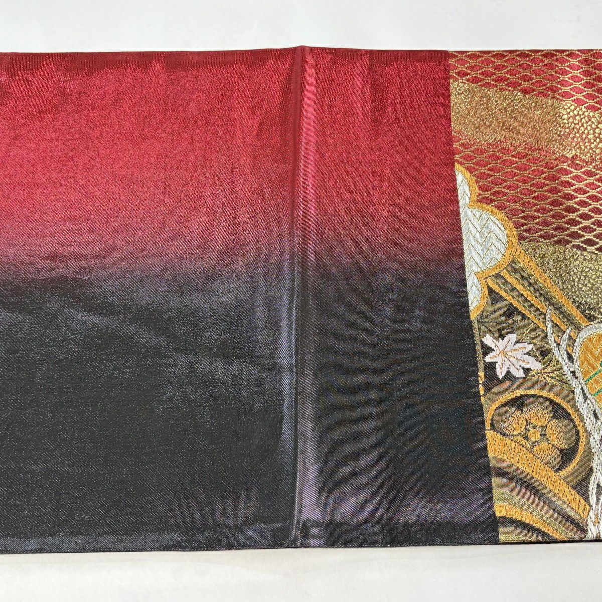 【美品】半幅帯 優品 松竹梅 幾何学 ぼかし 黒灰 化繊