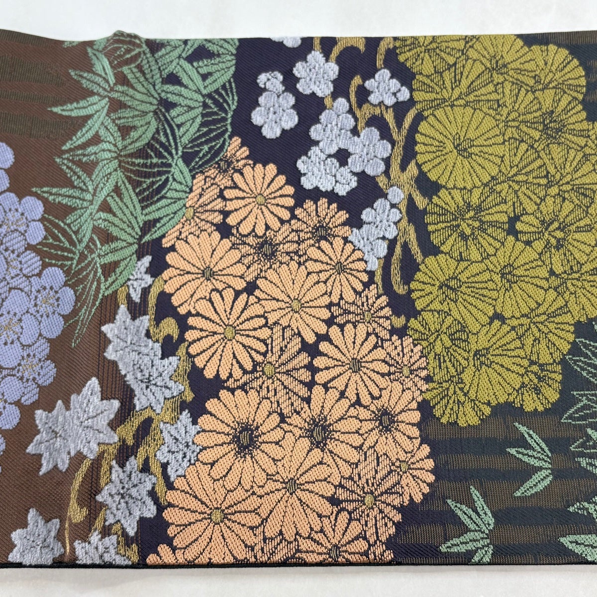 【美品】 袋帯 秀品 証紙あり 松竹梅 芝 唐織 金糸 金色 六通 正絹