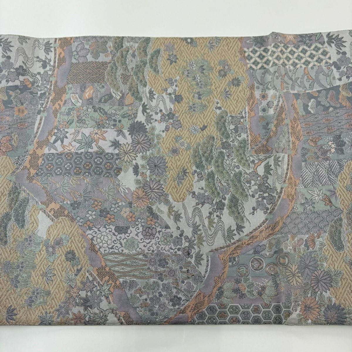 【美品】 袋帯 秀品 松竹梅 貝合わせ 箔 金銀糸 灰白 六通 正絹