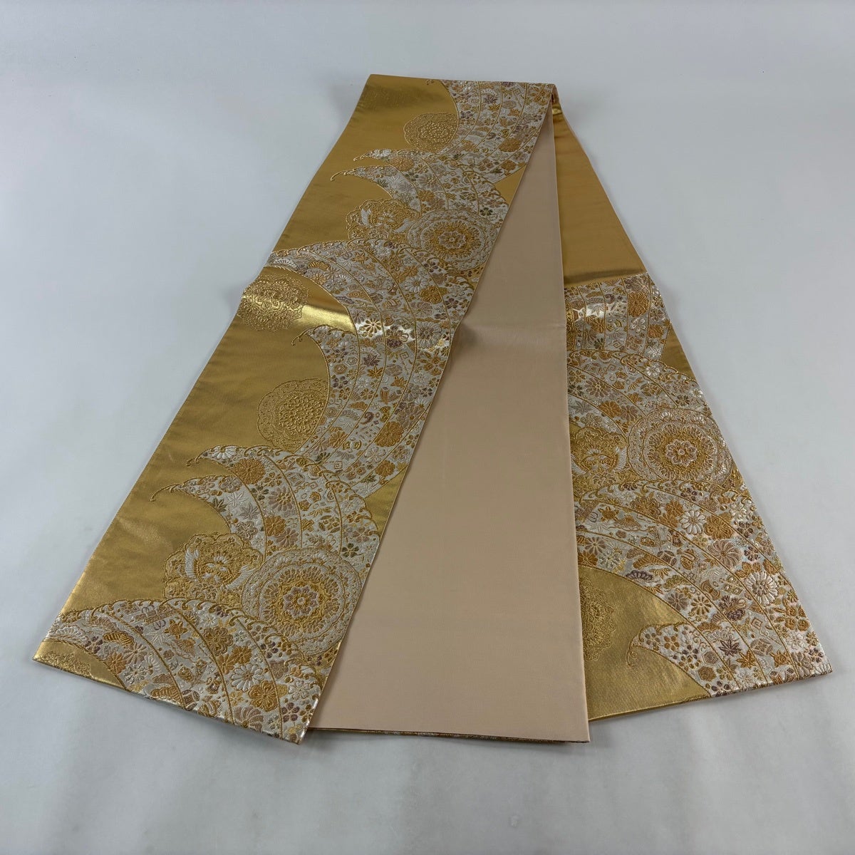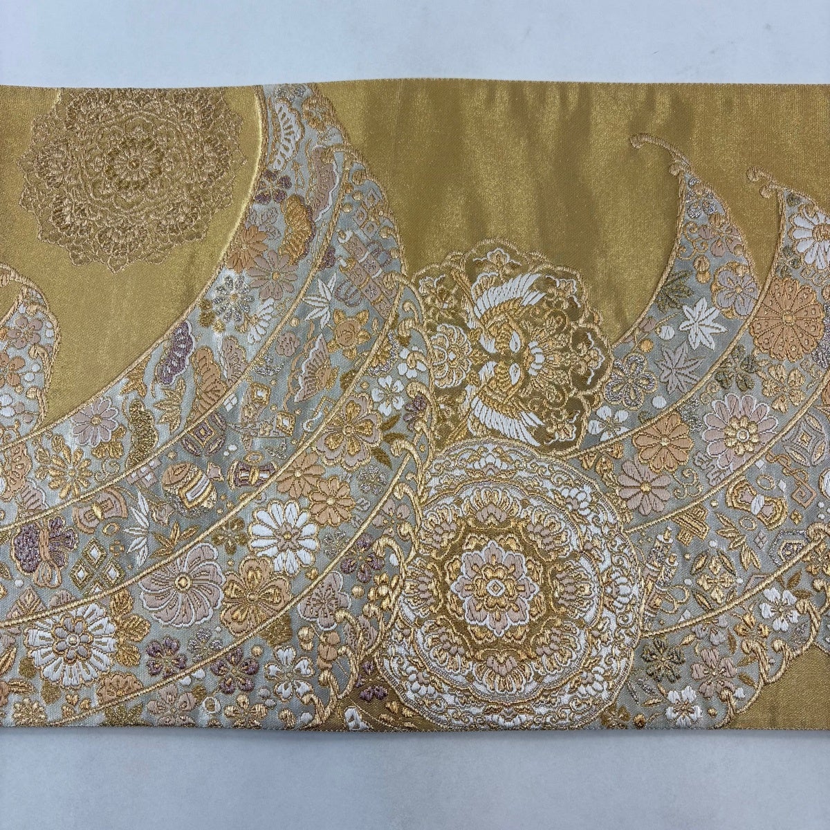 【美品】 袋帯 秀品 落款あり 華文 松竹梅 金糸 箔 金色 六通 正絹