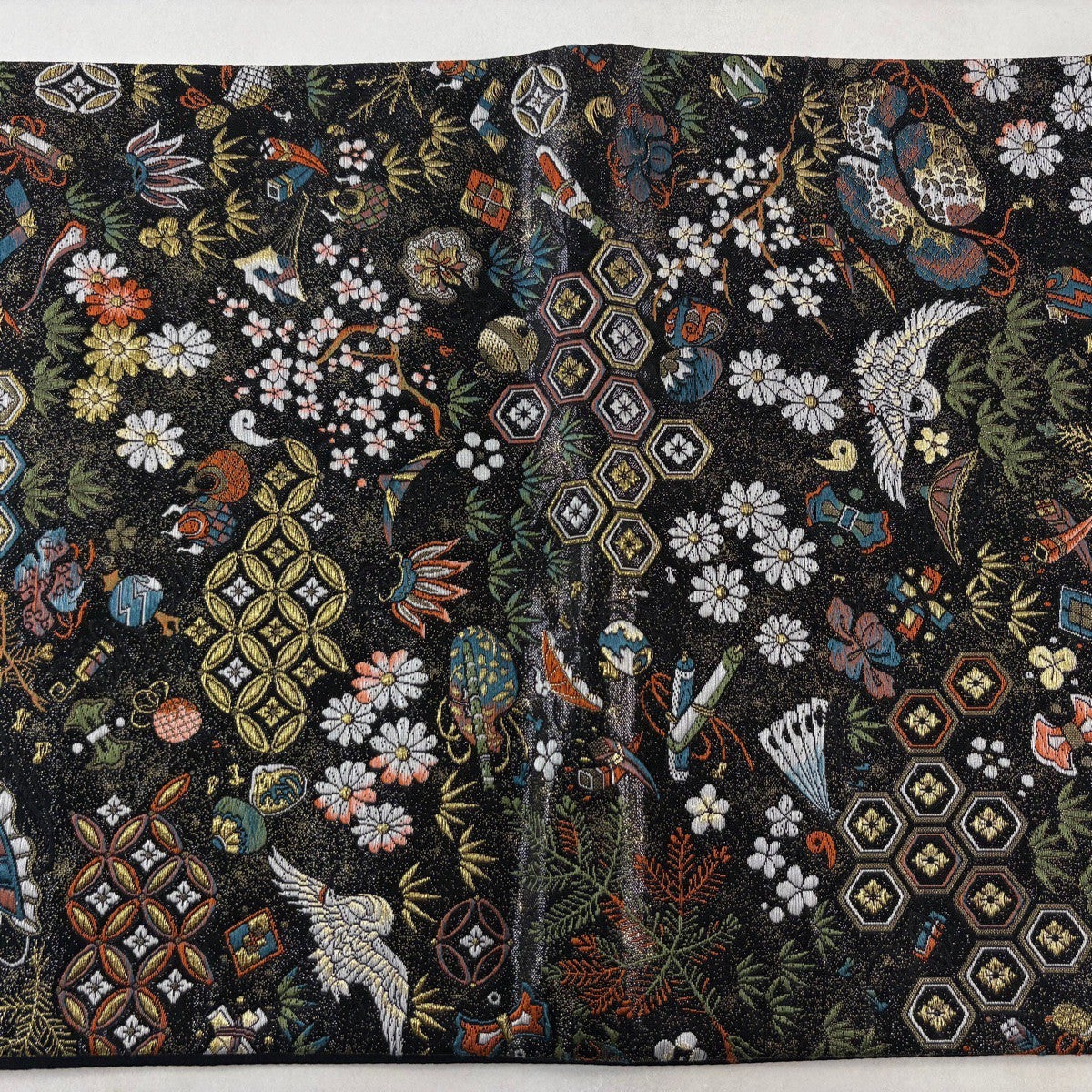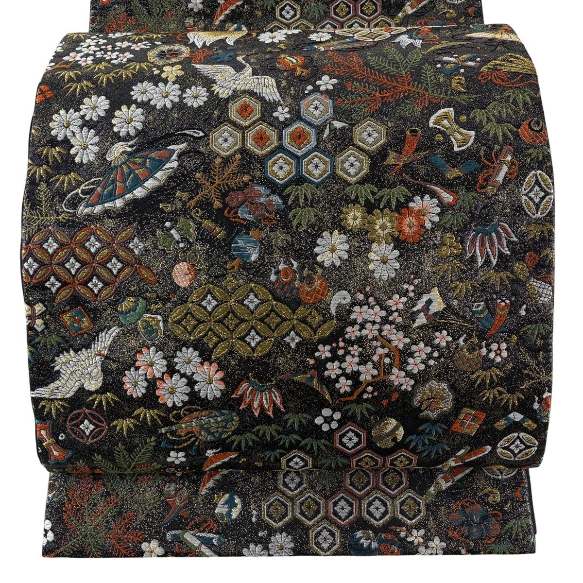 【美品】 袋帯 名品 繍い袋帯 松竹梅 宝尽くし 金銀糸 金色 六通 正絹