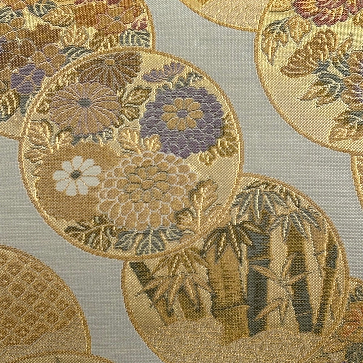 【美品】 袋帯 秀品 証紙あり 菊 松竹梅 箔 金糸 青灰色 六通 正絹