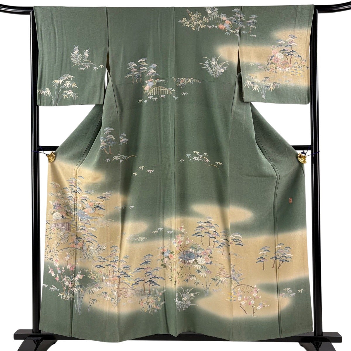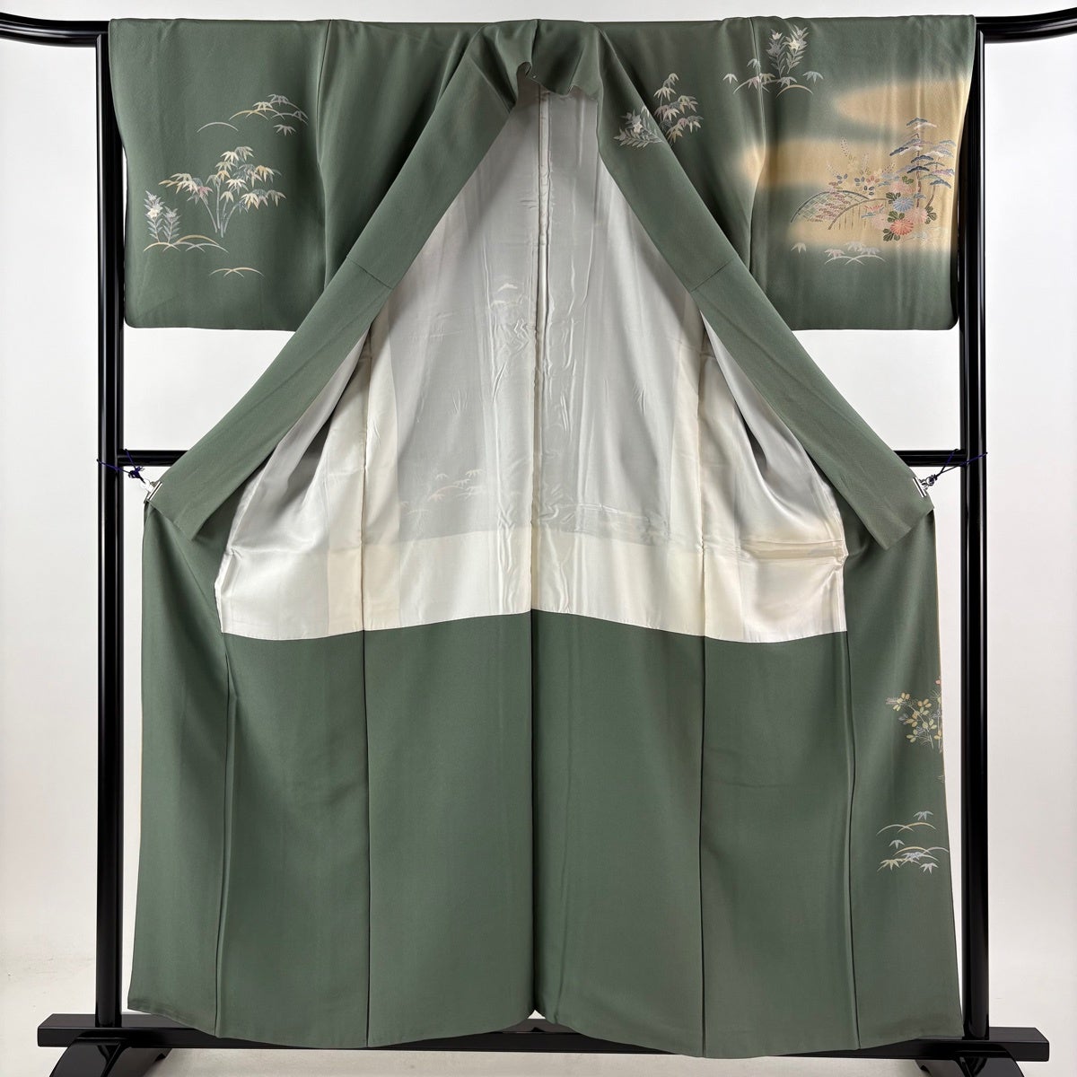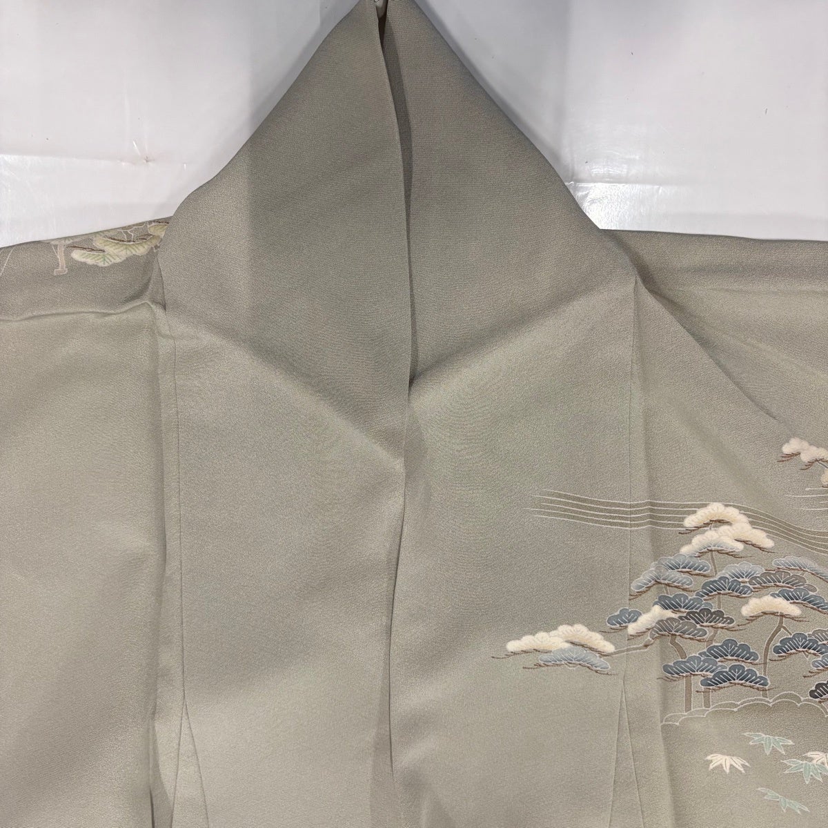 付下げ 身丈158.5cm 裄丈63.5cm S 袷 松竹梅 吹き寄せ 刺繍 抹茶色 正絹 秀品 一つ紋