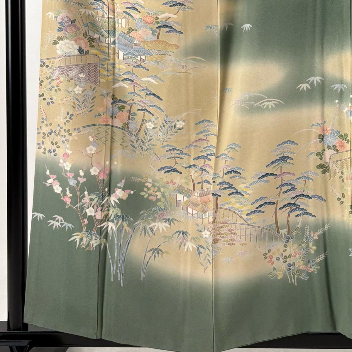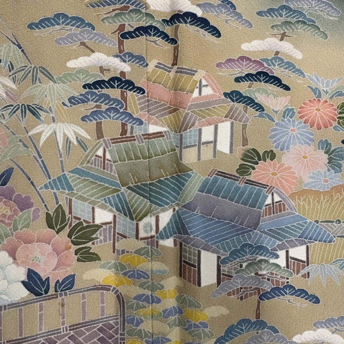 付下げ 身丈157cm 裄丈65.5cm M 袷 松竹梅 鴛鴦 金糸 染め分け からし色 正絹 秀品