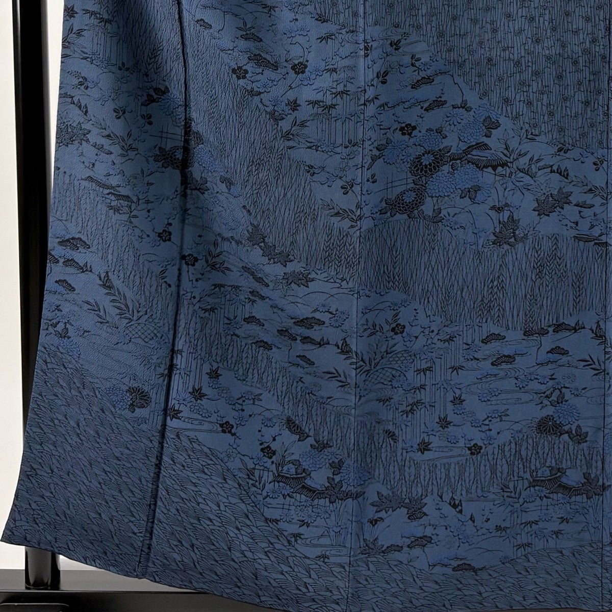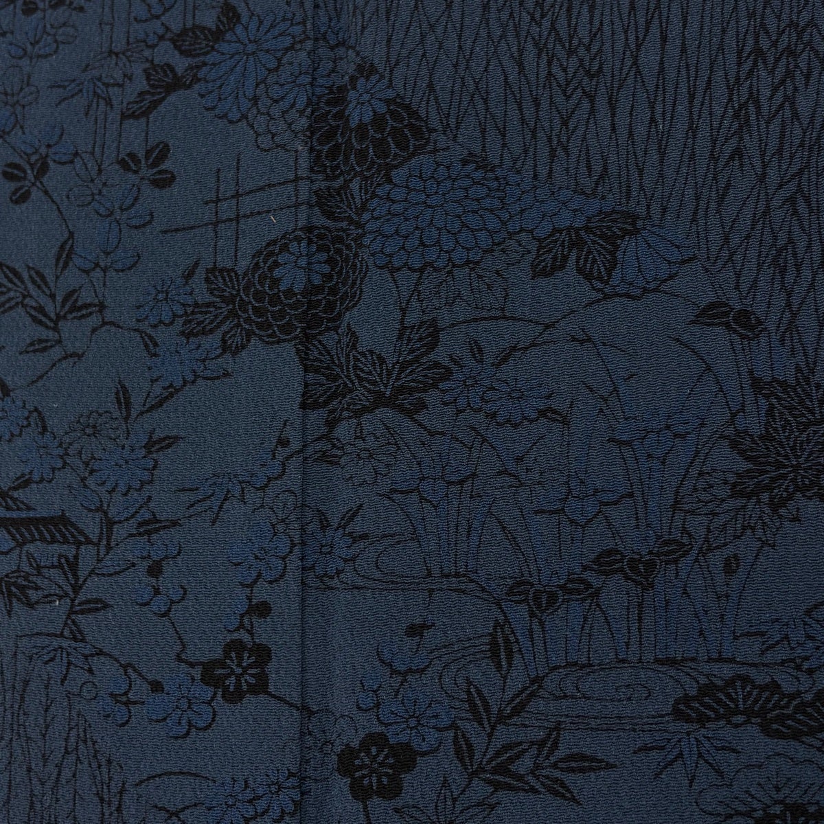 訪問着 身丈157cm 裄丈64cm M 袷 南部幸雄 落款あり 菊 松竹梅 縮緬 紺色 正絹 秀品