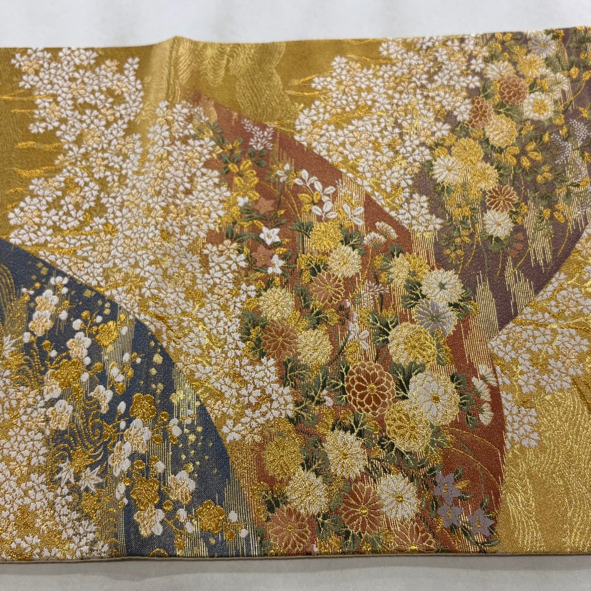 【美品】 袋帯 秀品 やまと 菊 桜 箔 金糸 金色 六通 正絹