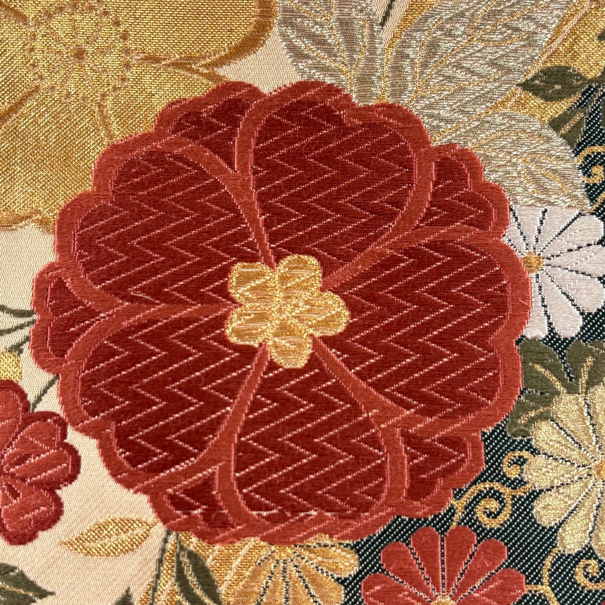 【美品】 袋帯 秀品 振袖向き 薔薇 桜 金糸 箔 金色 六通 正絹