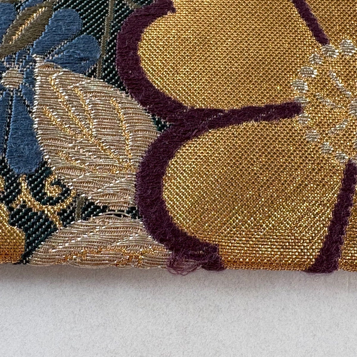 【美品】 袋帯 秀品 振袖向き 桜 梅 金糸 箔 金色 六通 正絹