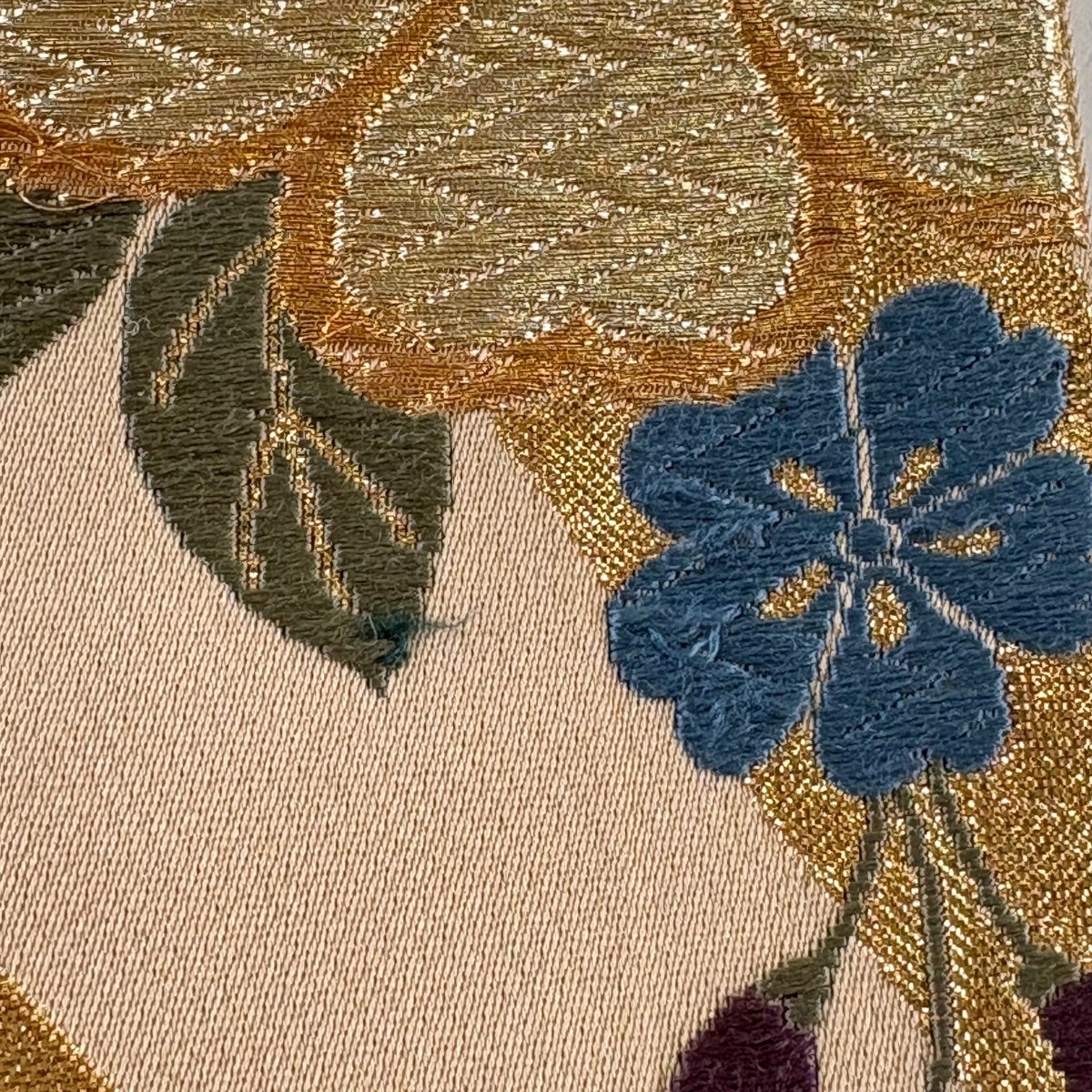 【美品】 袋帯 秀品 桜 幾何学 金糸 ベージュ 六通 正絹