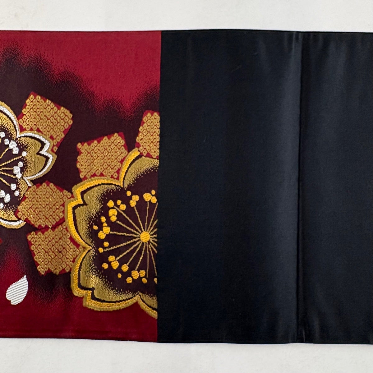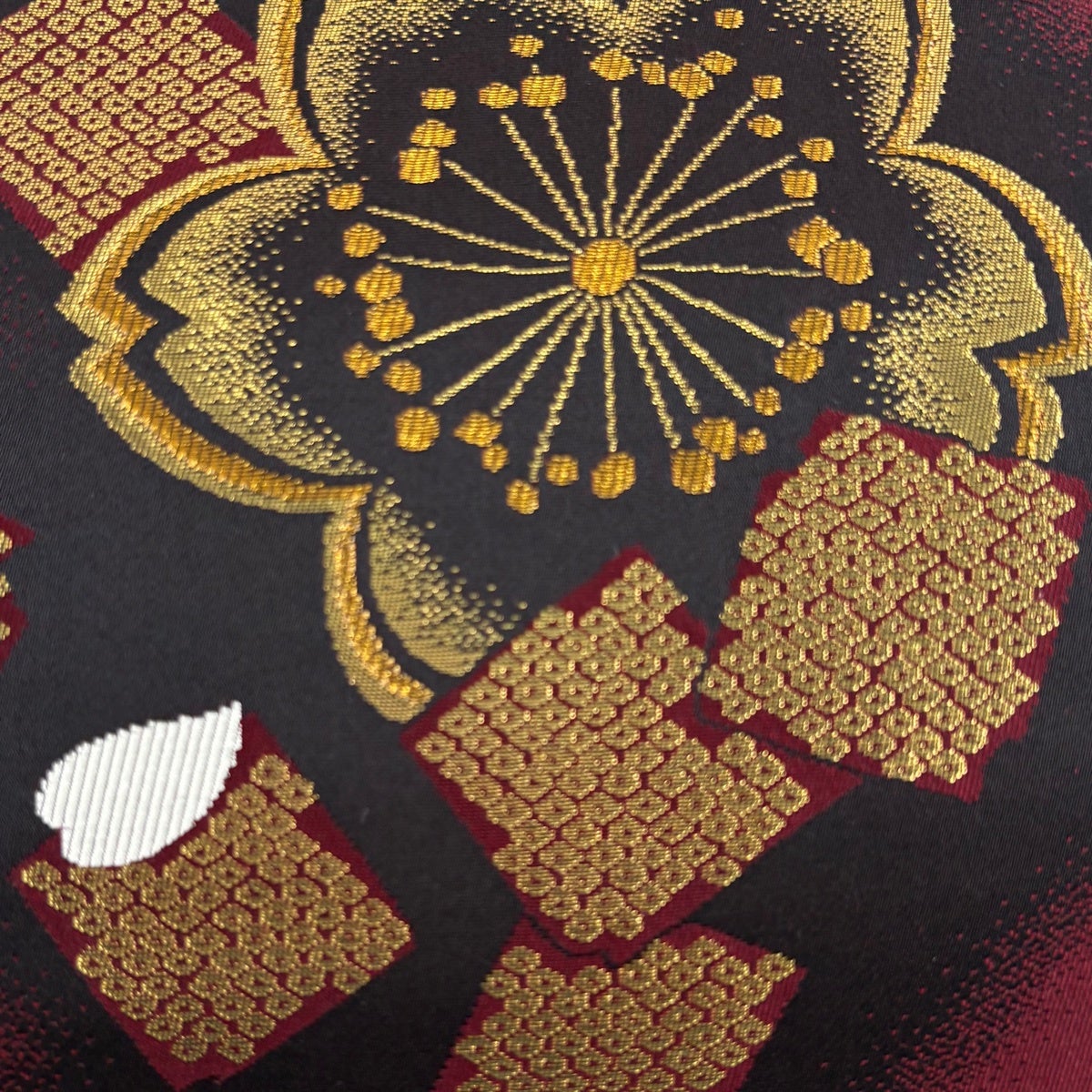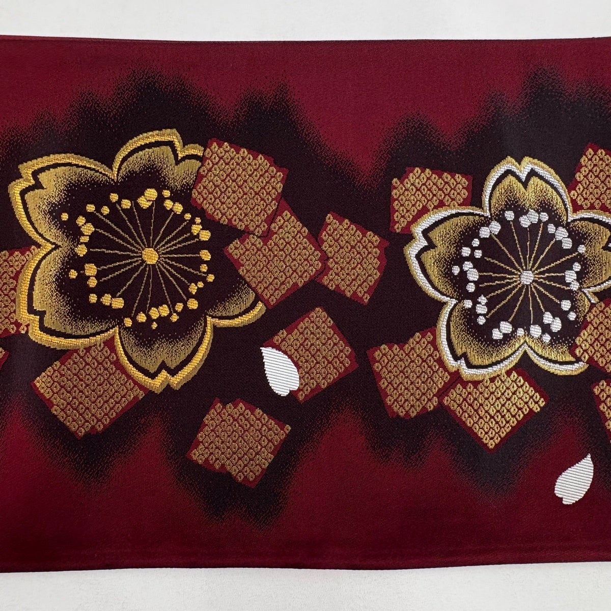 【美品】 袋帯 秀品 桜 花びら 金銀糸 箔 えんじ色 六通 正絹