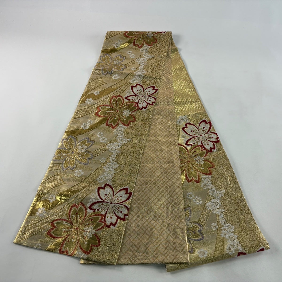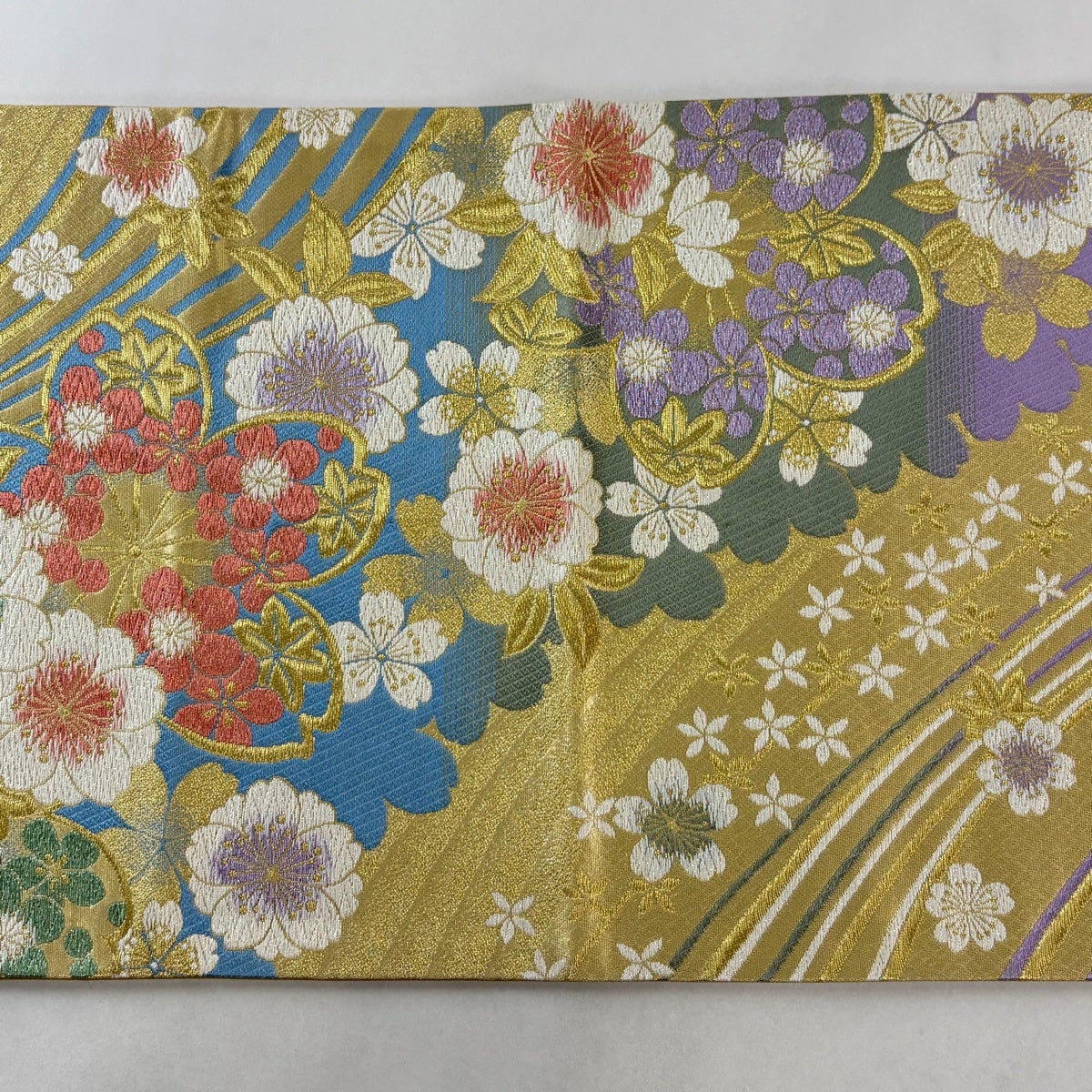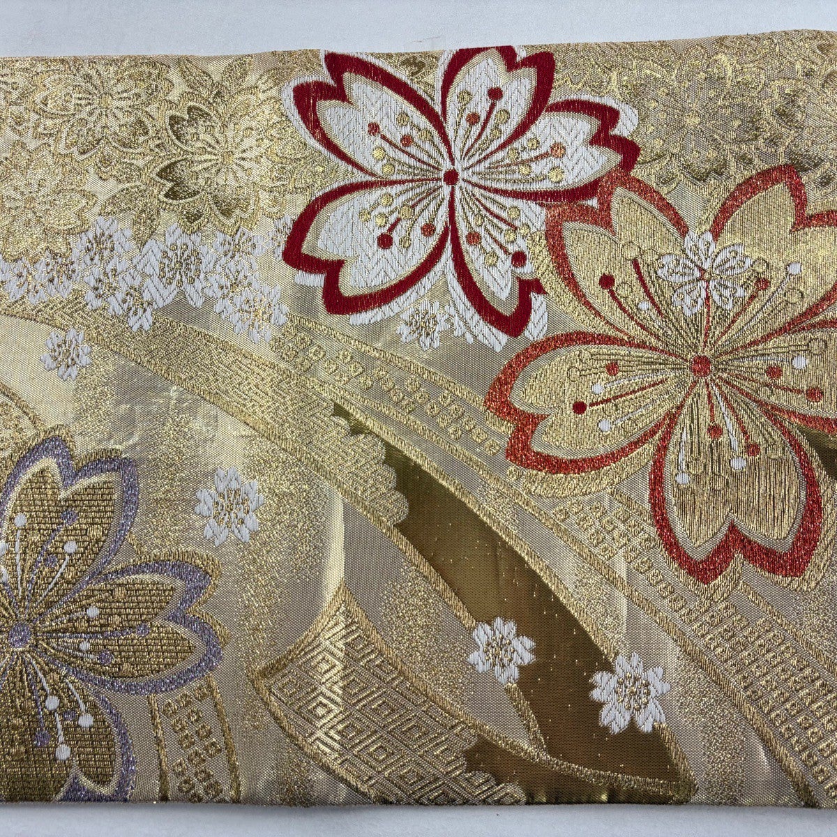 袋帯 秀品 桜 華文 金糸 箔 金色 全通 正絹