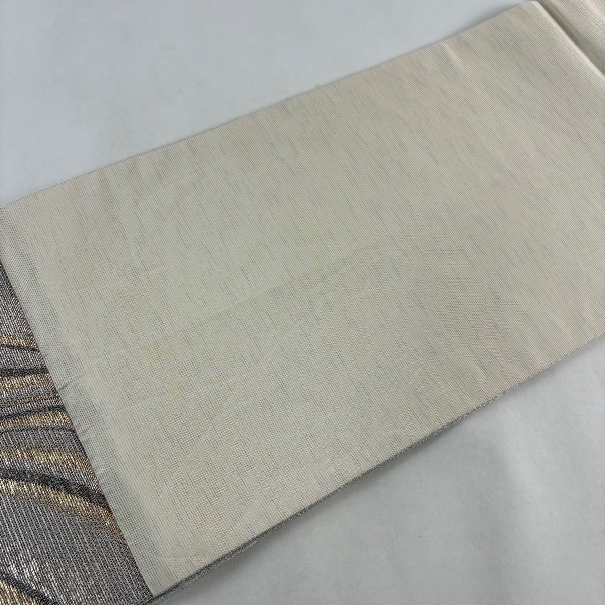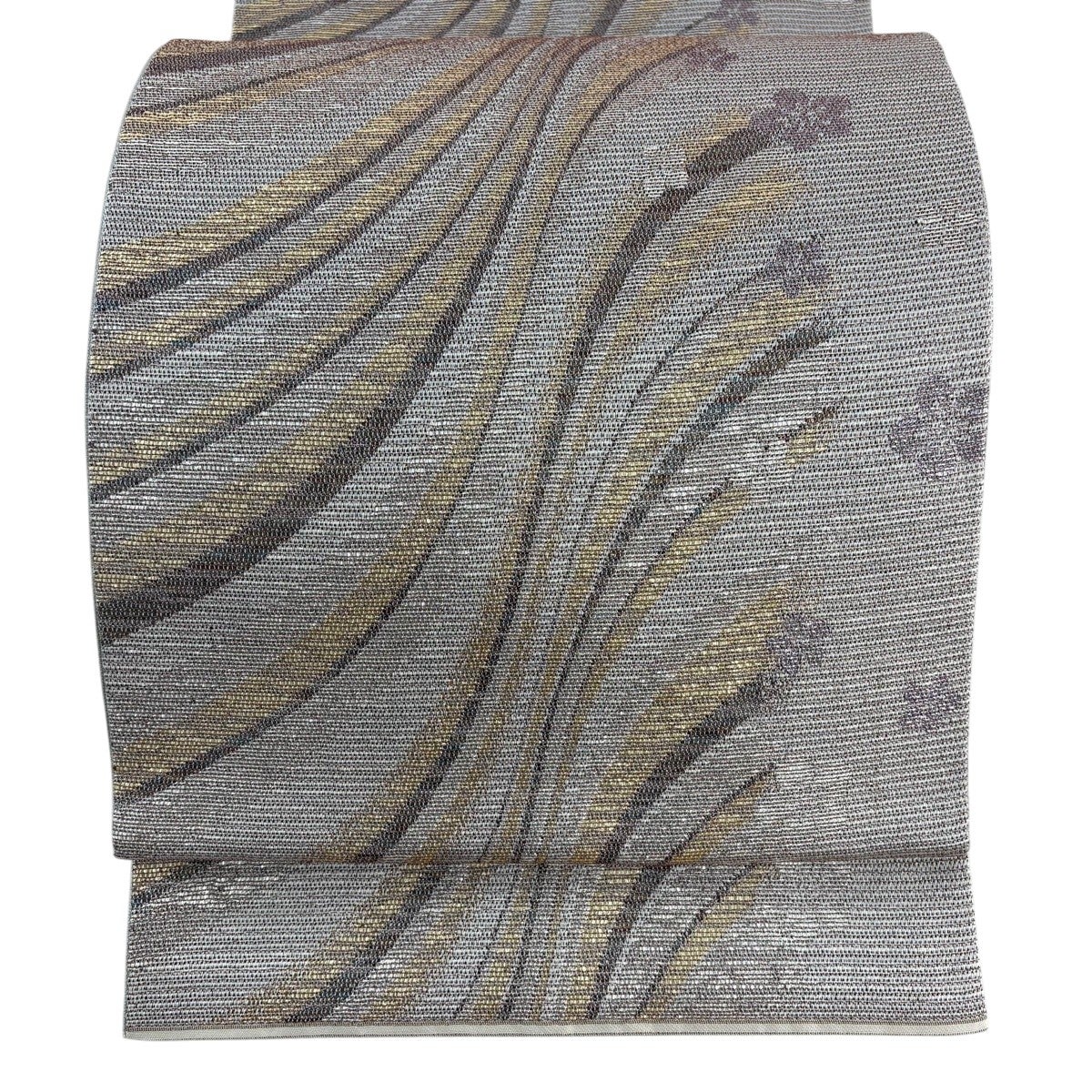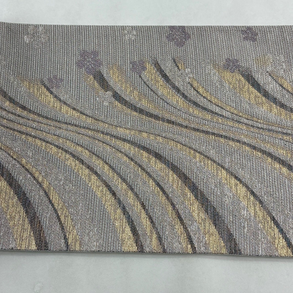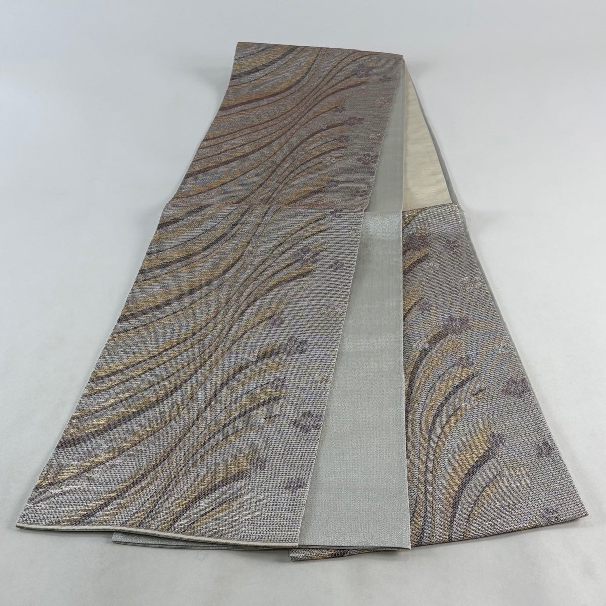 袋帯 秀品 桜 波 金糸 箔 灰色 六通 正絹