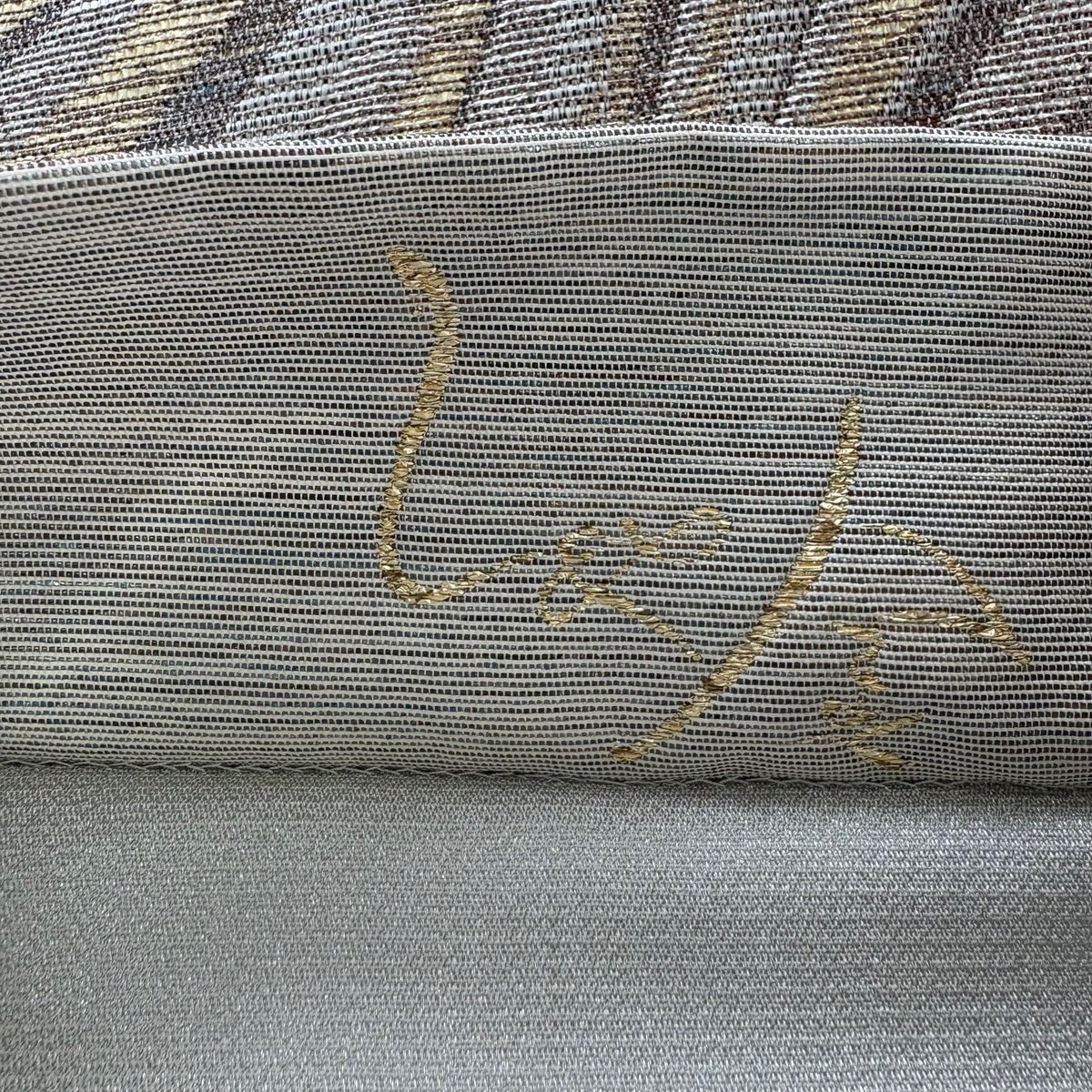 袋帯 秀品 波 桜 唐織 箔 灰緑 六通 正絹
