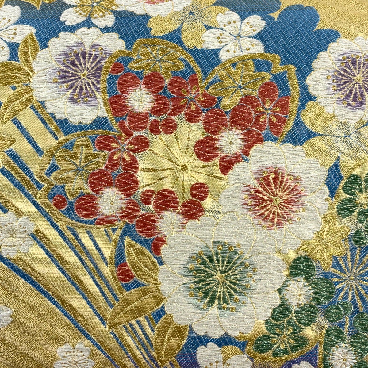 袋帯 秀品 菊 桜 金銀糸 箔 金色 六通 正絹