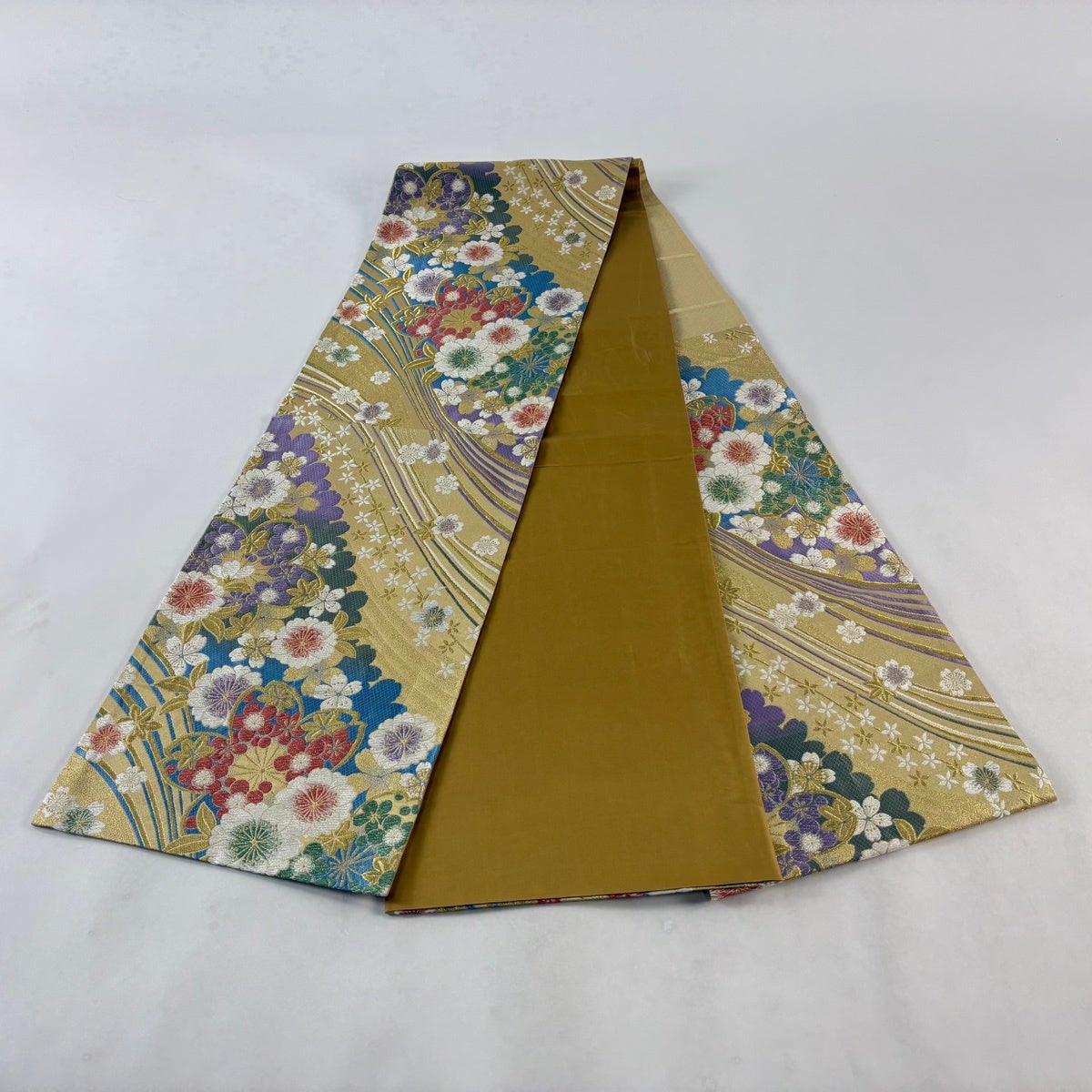 袋帯 秀品 桜 流水 金糸 箔 金色 六通 正絹