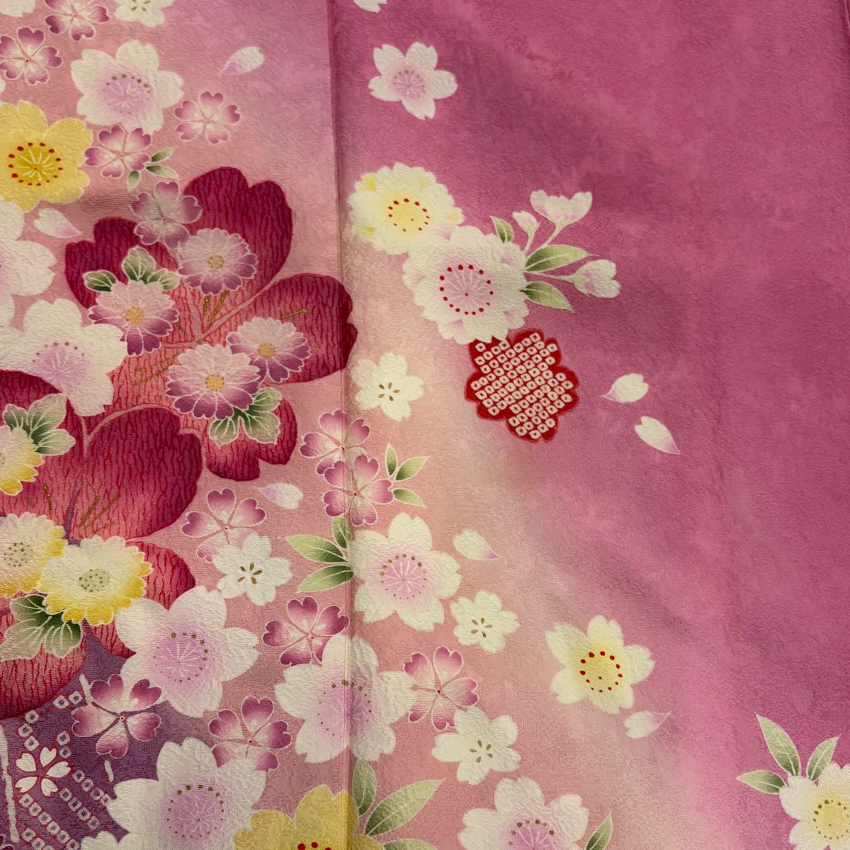 振袖 身丈165cm 裄丈67cm M 袷 桜 花びら 染め分け ぼかし ピンク 正絹 秀品