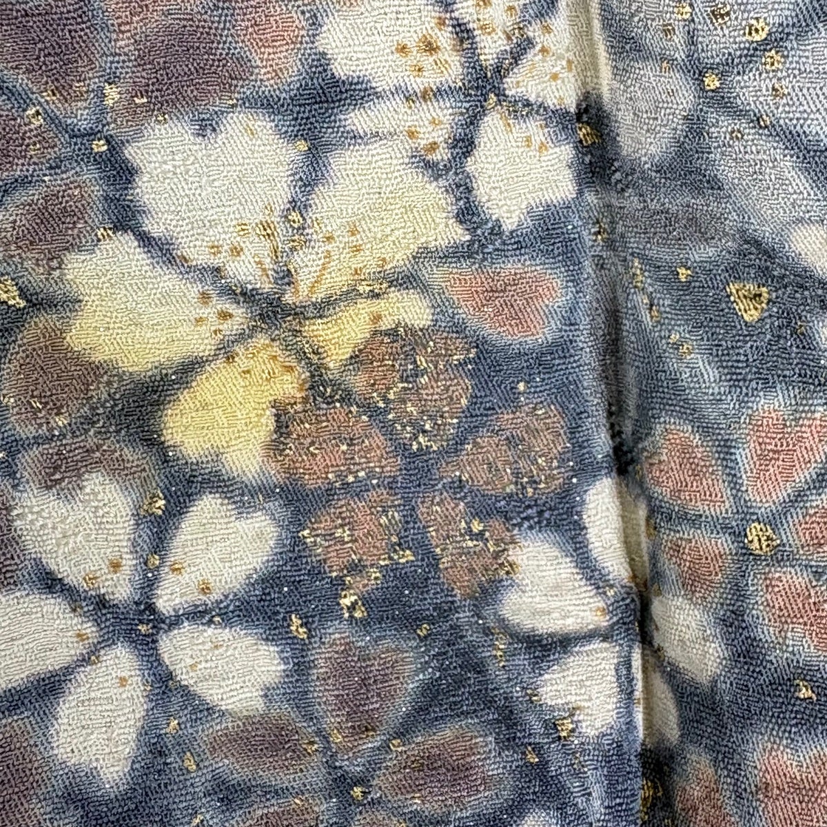 結城紬 身丈165cm 裄丈68.5cm L 袷 奥順 はたおり娘 証紙あり 亀甲絣 桜 灰紫 正絹 逸品