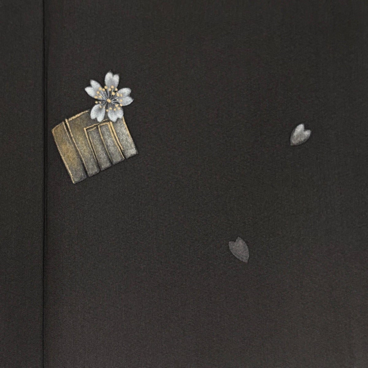 訪問着 身丈160.5cm 裄丈63cm S 袷 落款あり 源氏香 桜 金彩 染め分け 墨色 正絹 秀品