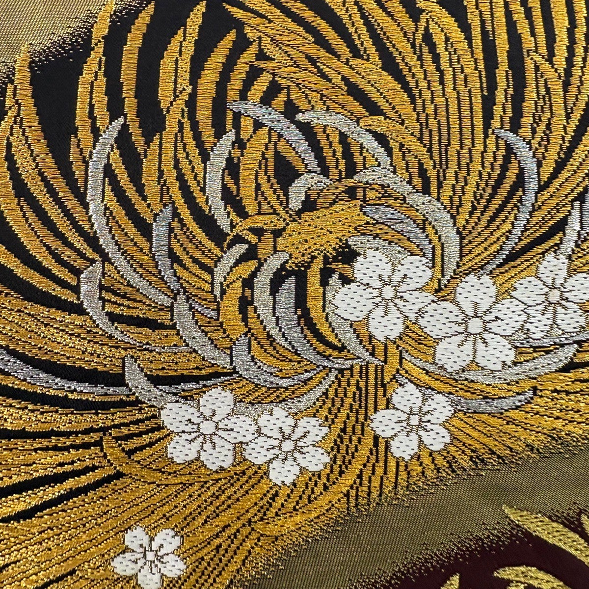 袋帯 秀品 桜 菊 唐織 金銀糸 黒 六通 正絹