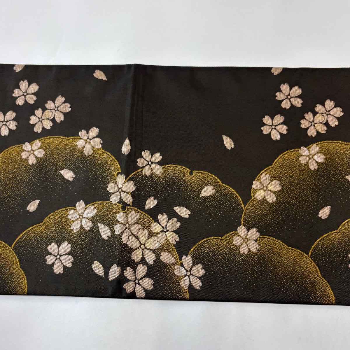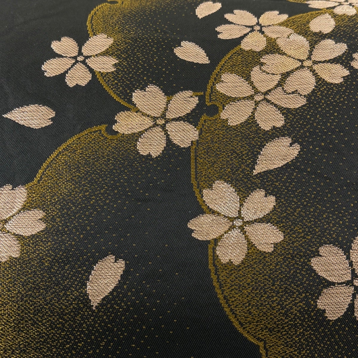 袋帯 秀品 桜 花びら 唐織 箔 黒 六通 正絹