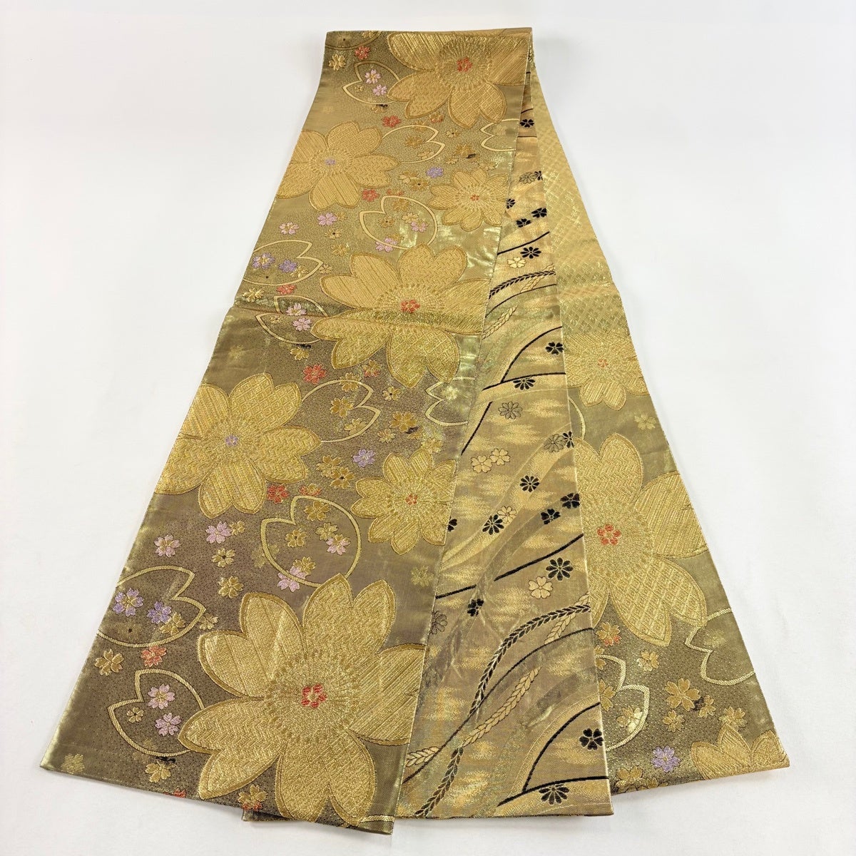 袋帯 秀品 桜 流水 箔 金銀糸 金色 六通 正絹