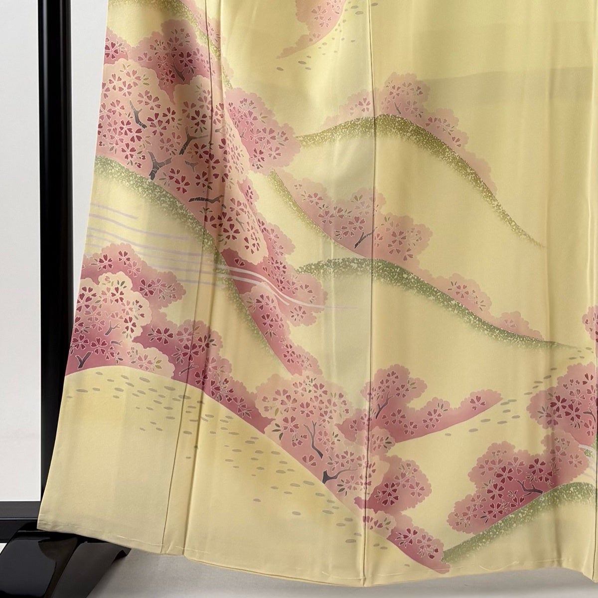 付下げ 身丈162cm 裄丈63.5cm S 袷 落款あり 桜の花びら 黒 正絹 名品