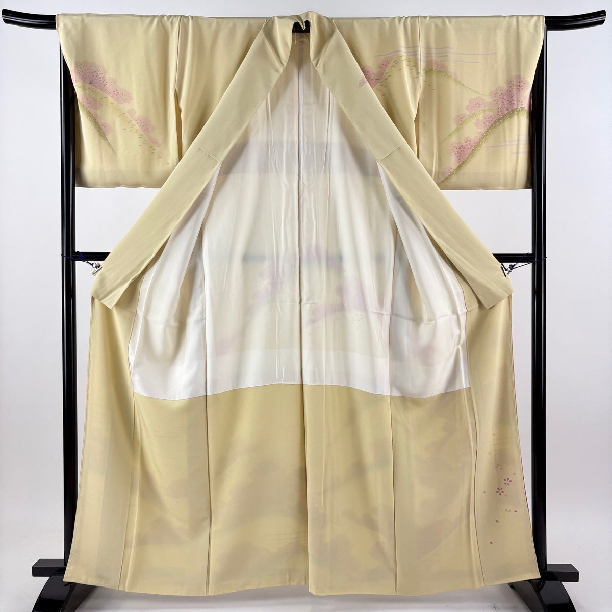 訪問着 身丈156.5cm 裄丈63.5cm S 袷 落款あり 源氏香 桜 ぼかし 染め分け ベージュ 正絹 秀品 一つ紋