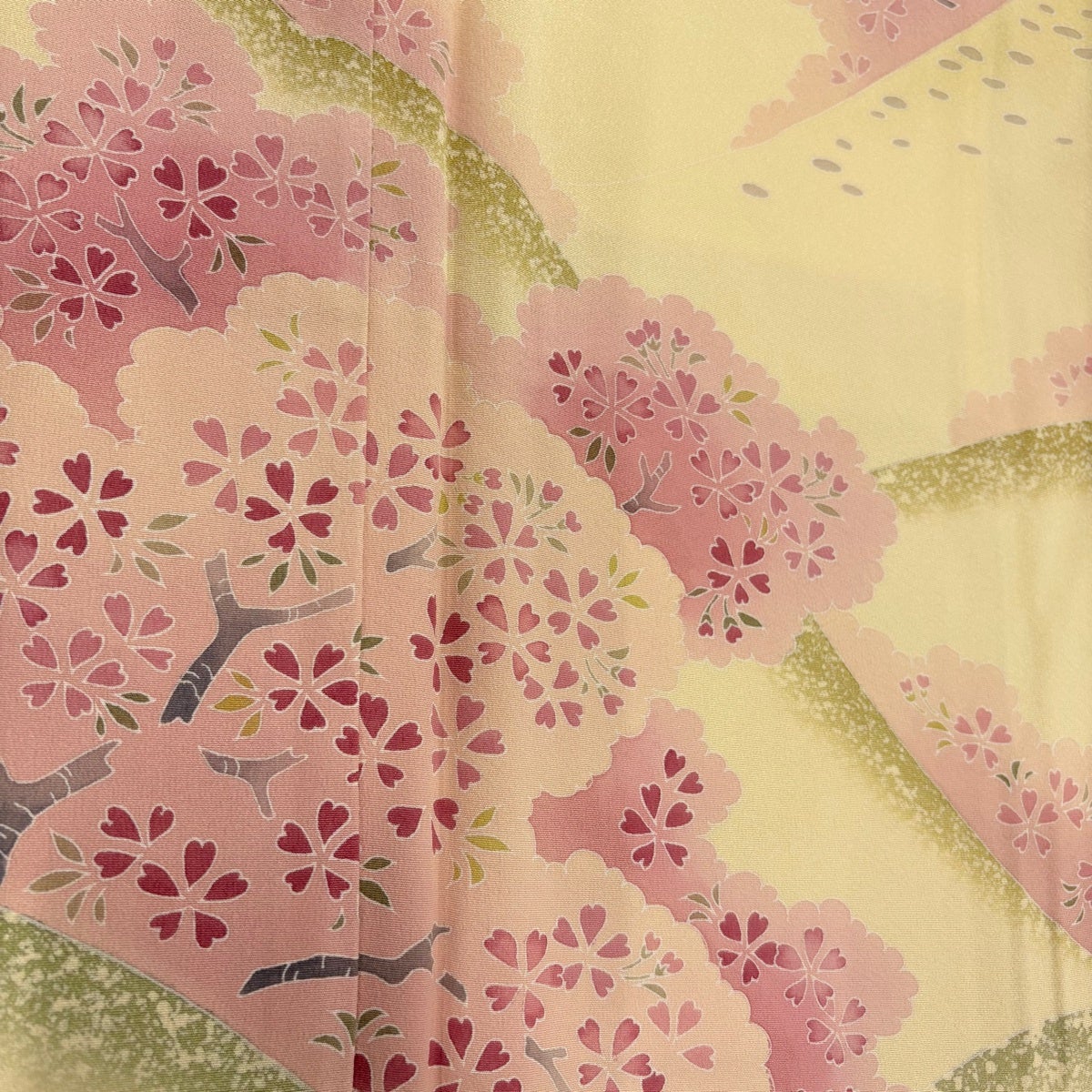 【美品】 訪問着 身丈165cm 裄丈67cm M 袷 落款あり 桜 花びら 染め分け ぼかし ピンクベージュ 正絹 名品 一つ紋